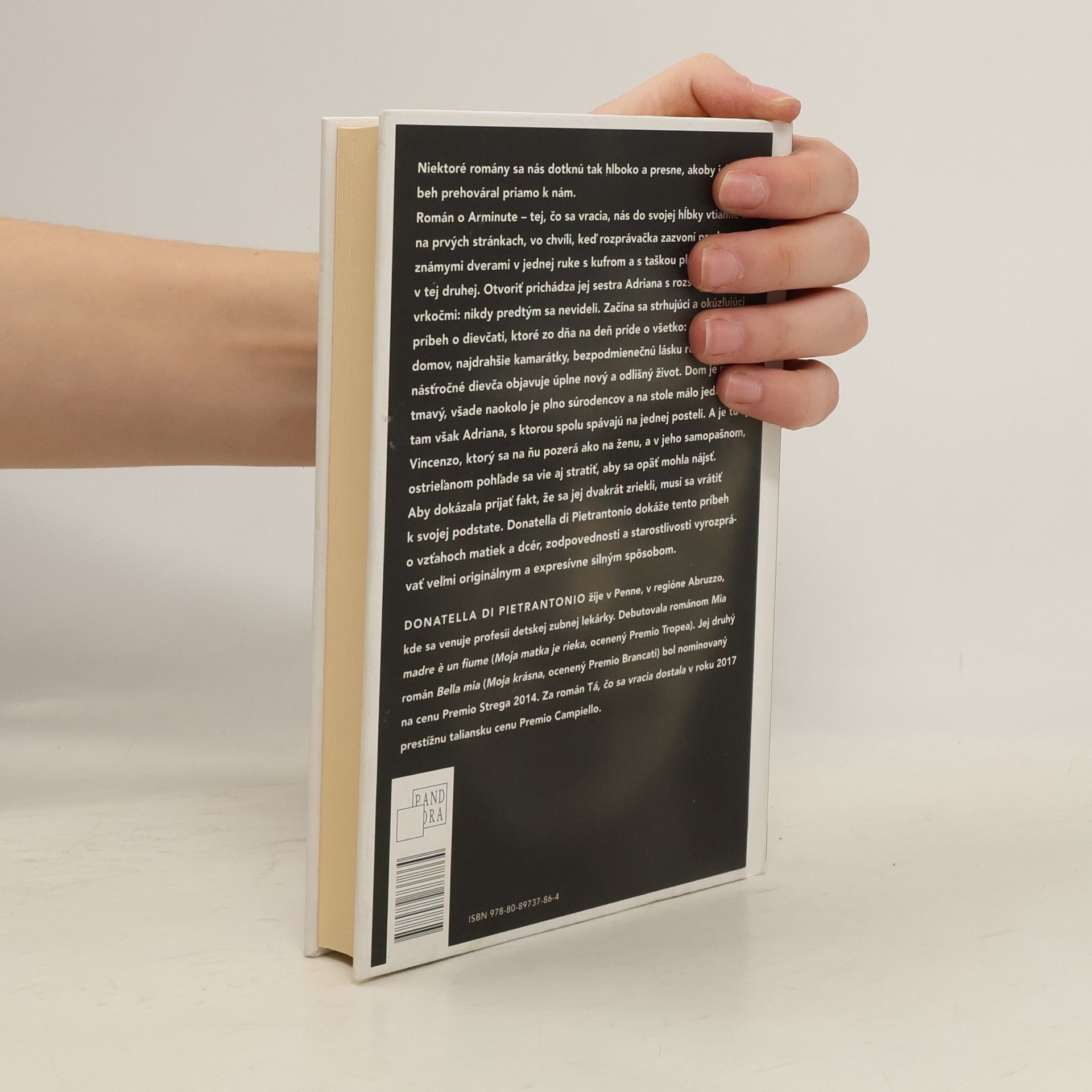 Román o Arminute – tej, čo sa vracia, nás do svojej hĺbky vtiahne už na prvých stránkach, vo chvíli, keď rozprávačka zazvoní pred neznámymi dverami v jednej ruke s kufrom a s taškou plnou topánok v tej druhej. Otvoriť prichádza jej sestra Adriana s rozstrapatenými vrkočmi: nikdy predtým sa nevideli. Začína sa strhujúci a okúzľujúci príbeh o dievčati, ktoré zo dňa na deň príde o všetko: o pohodlný domov, najdrahšie kamarátky, bezpodmienečnú lásku rodičov. Trinásťročné dievča objavuje úplne nový a odlišný život. Dom je malý, tmavý, všade naokolo je plno súrodencov a na stole málo jedla. Je tam však Adriana, s ktorou spolu spávajú na jednej posteli. A je tu aj Vincenzo, ktorý sa na ňu pozerá ako na ženu, a v jeho samopašnom, ostrieľanom pohľade sa vie aj stratiť, aby sa opäť mohla nájsť. Aby dokázala prijať fakt, že sa jej dvakrát zriekli, musí sa vrátiť k svojej podstate. Donatella di Pietrantonio dokáže tento príbeh o vzťahoch matiek a dcér, zodpovednosti a starostlivosti vyrozprávať veľmi originálnym a expresívne silným spôsobom.