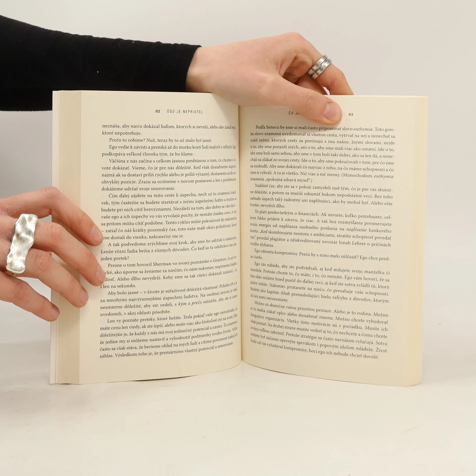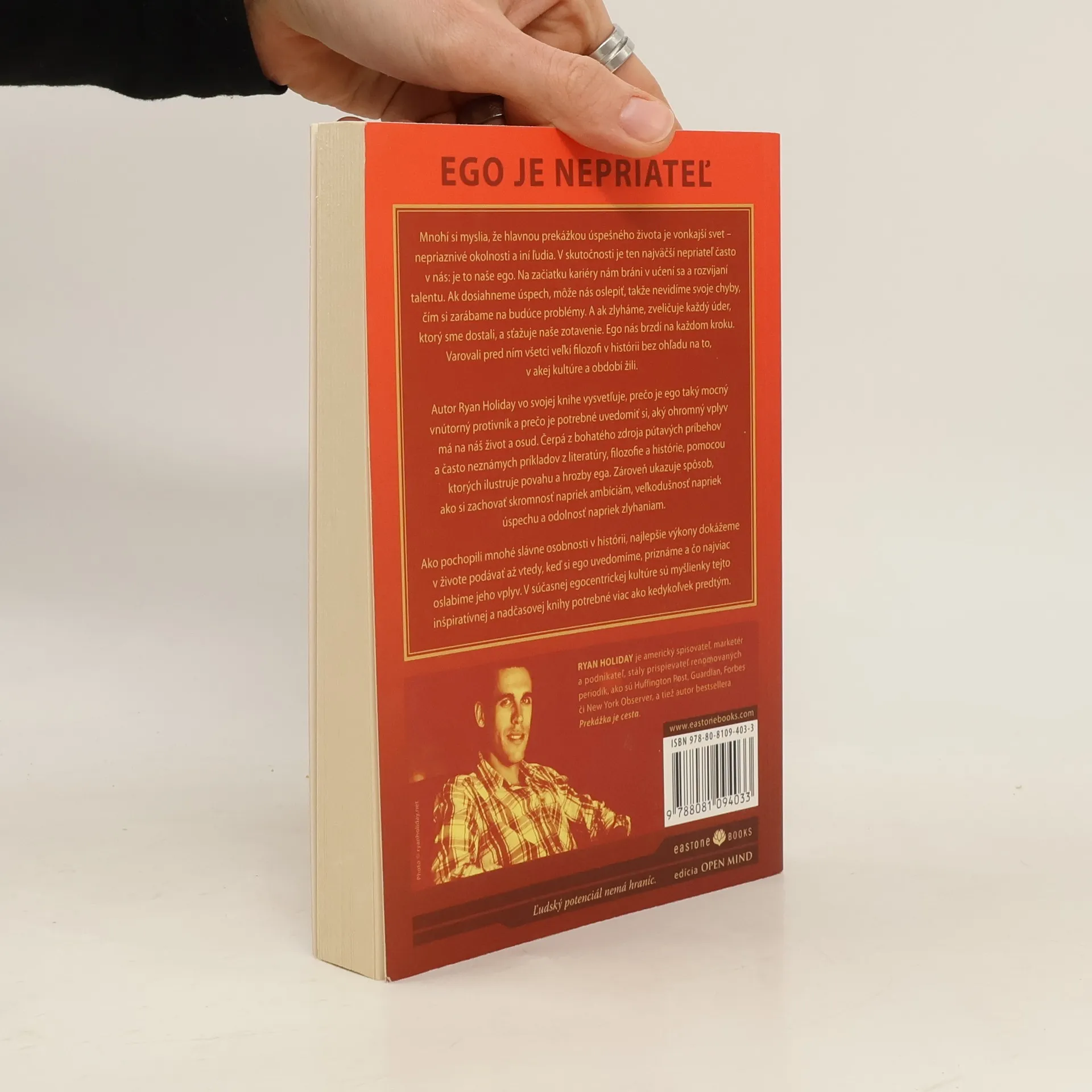 Mnohí si myslia, že hlavnou prekážkou úspešného života je vonkajší svet – nepriaznivé okolnosti a iní ľudia. V skutočnosti je ten najväčší nepriateľ často v nás: je to naše ego. Na začiatku kariéry nám bráni v učení sa a rozvíjaní talentu. Ak dosiahneme úspech, môže nás oslepiť, takže nevidíme svoje chyby, čím si zarábame na budúce problémy. A ak zlyháme, zveličuje každý úder, ktorý sme dostali, a sťažuje naše zotavenie. Autor vo svojej knihe vysvetľuje, prečo je ego taký mocný vnútorný oponent a prečo je potrebné uvedomiť si, aký ohromný vplyv má na náš život a osud. Čerpá z bohatého zdroja pútavých príbehov a často neznámych príkladov z literatúry, filozofie a histórie, pomocou ktorých ilustruje povahu a hrozby ega. Zároveň ukazuje spôsob, ako si zachovať skromnosť napriek ambíciám, veľkodušnosť napriek úspechu a odolnosť napriek zlyhaniam.