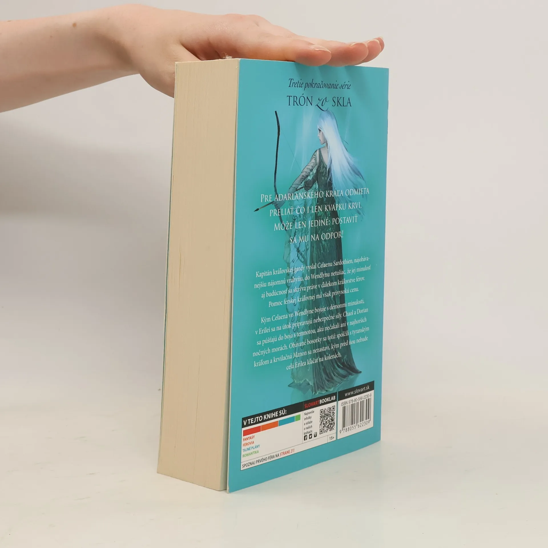 Tretí diel najúspešnejšej fantasy série súčasnosti Trón zo skla v hlavnej úlohe s najobávanejšou nájomnou vrahyňou Celaenou Sardothien! Celaena sa už vysporiadala s nebezpečnými protivníkmi i so srdcom rozlámaným na márne kúsky. Teraz myslí len na pomstu, no ako kráľova šampiónka musí slúžiť podlému tyranovi, ktorý má všetko na svedomí. Kapitán kráľovskej gardy ju však vyšle do Wendlynu netušiac, že Celaenina minulosť aj budúcnosť sa skrýva práve v ďalekom kráľovstve férov. Pomoc férskej kráľovnej má však privysokú cenu... Kým Celaena vo Wendlyne bojuje s démonmi minulosti, v Erilei sa na útok pripravujú nebezpečné sily. Chaol a Dorian sa púšťajú do boja s temnotou, akú nečakali ani v najhorších nočných morách. Obávané bosorky sa totiž spolčili s tyranským kráľom a krvilačná Manon sa nezastaví, kým pred ňou nebude celá Erilea kľačať na kolenách. Ak dokáže Celaena prekonať samú seba, stane sa najväčšou hrozbou pre kráľa a jeho zem – ale aj pre seba. Nenechajte si ujsť najpopulárnejšiu fantasy sériu súčasnosti: Trón zo skla, Koruna z temnoty, Zrodená z ohňa... a nezabudnite na štyri exkluzívne novely k sérii Trón zo skla!