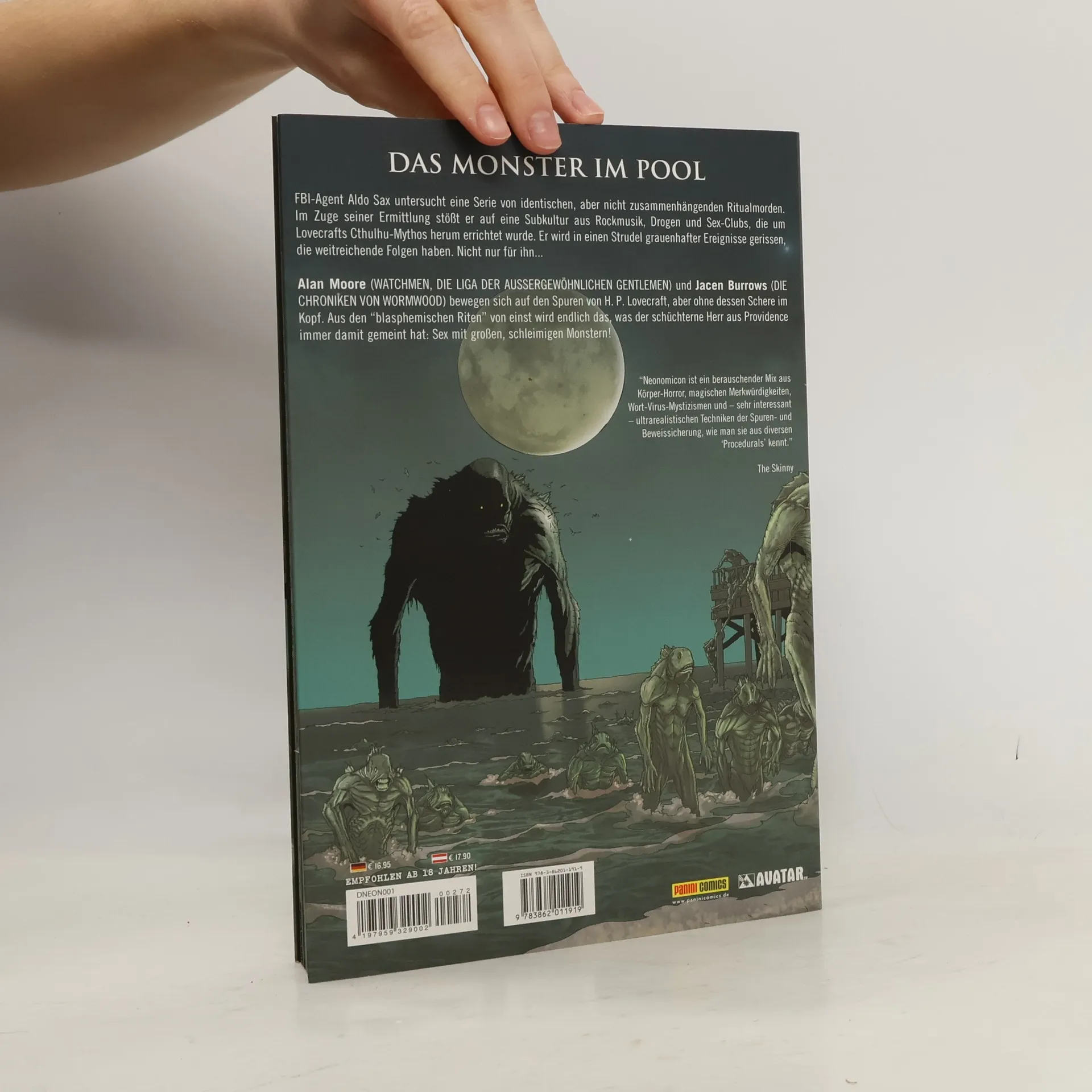 DAS MONSTER IM POOL. FBI-Agent Aldo Sax untersucht eine Serie von identischen, aber nicht zusammenhängenden Ritualmorden. Im Zuge seiner Ermittlung stößt er auf eine Subkultur aus Rockmusik, Drogen und Sex-Clubs, die um Lovecrafts Cthulhu-Mythos herum errichtet wurde. Er wird in einen Strudel grauenhafter Ereignisse gerissen, die weitreichende Folgen haben. Und nicht nur für ihn.
