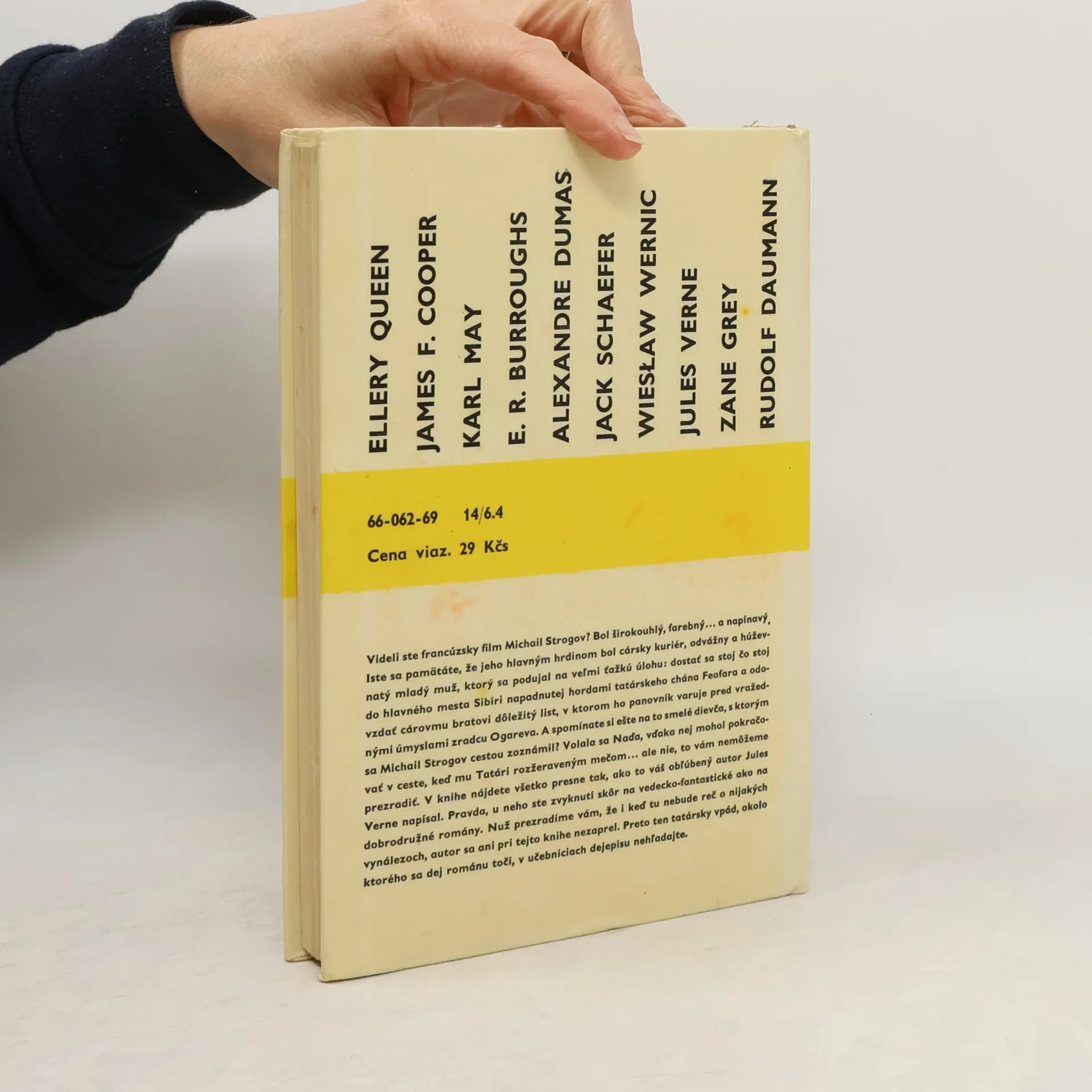 Videli ste francúzsky film Michail Strogov? Bol širokouhlý, farebný... a napínavý. Iste sa pamätáte, že jeho hlavným hrdinom bol cársky kuriér, odvážny a húževnatý mladý muž, ktorý sa podujal na veľmi ťažkú úlohu: dostať sa stoj čo stoj do hlavného mesta Sibíri napadnutej hordami tatárskeho chána Feofara a odovzdať cárovmu bratovi dôležitý list, v ktorom ho panovník varuje pred vražednými úmyslami zradcu Ogareva. A spomínate si ešte na to smelé dievča, s ktorým sa Michail Strogov cestou zoznámil? Volala sa Naďa, vďaka nej mohol pokračovať v ceste, keď mu Tatári rozžeraveným mečom... ale nie, to vám nemôžeme prezradiť. V knihe nájdete všetko presne tak, ako to váš obľúbený autor Jules Verne napísal. Pravda, u neho ste zvyknutí skôr na vedecko-fantastické ako na dobrodružné romány. Nuž prezradíme vám, že i keď tu nebude reč o nijakých vynálezoch, autor sa ani pri tejto knihe nezaprel. Preto ten tatársky vpád, okolo ktorého sa dej románu točí, v učebniciach dejepisu nehľadajte. Vydanie prvé