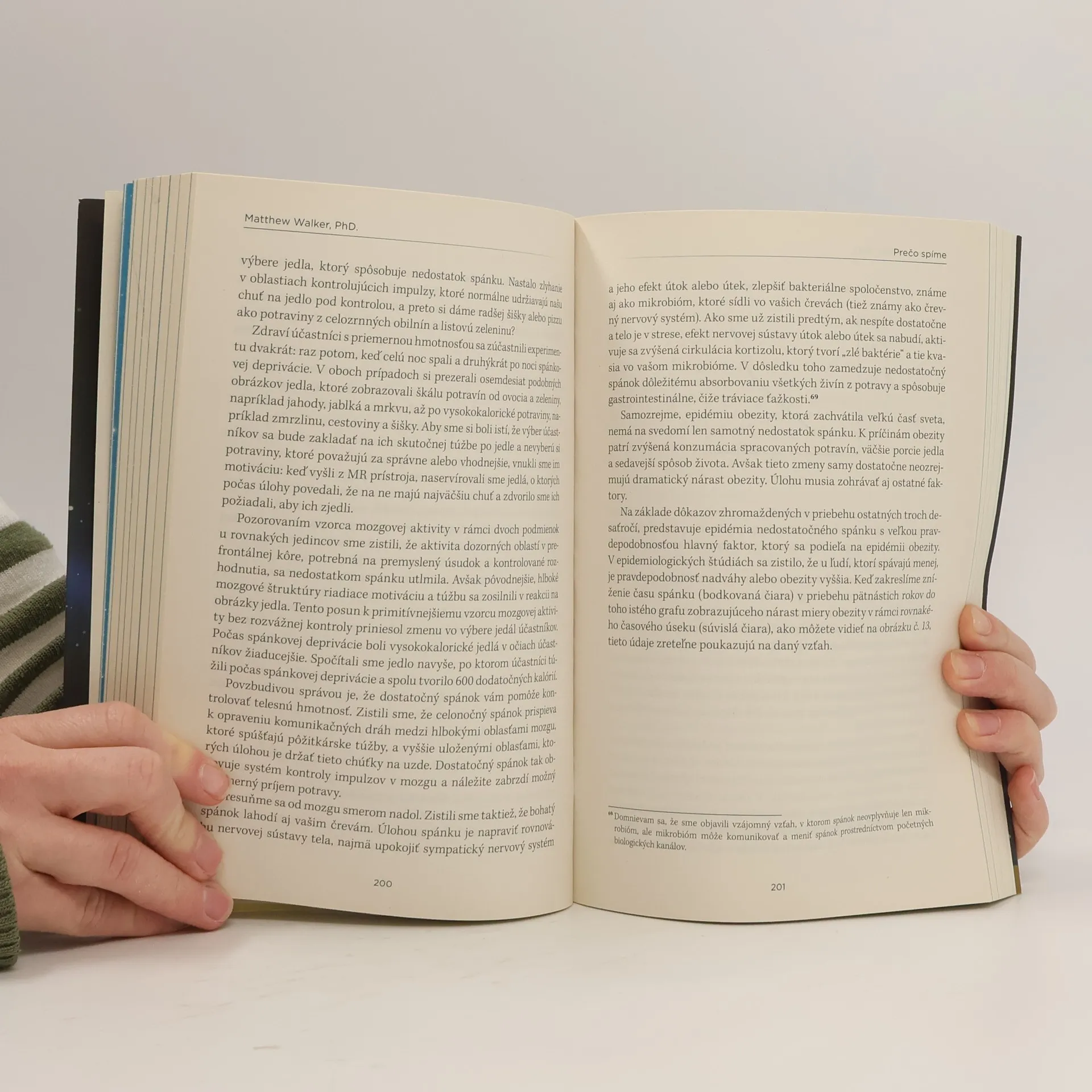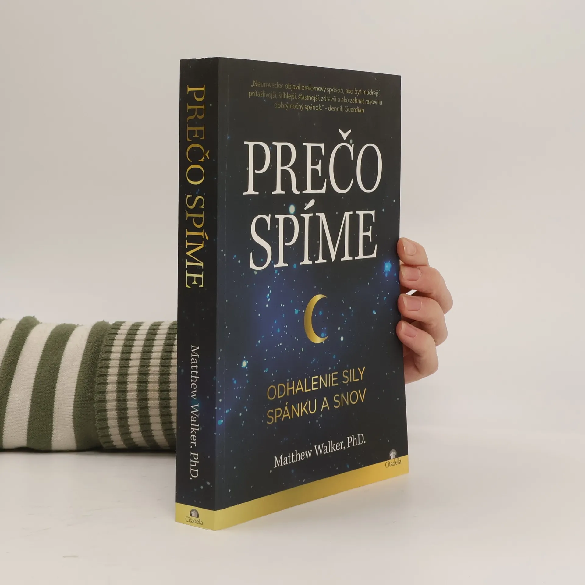 Spánok je jedným z najdôležitejších, ale najmenej pochopených aspektov nášho života, zdravia a dlhovekosti. Dlho sa nevedelo, prečo spíme a aké sú účinky nedostatku spánku na naše telo a mozog. Nové vedecké objavy za posledné dve desaťročia však osvetlili túto problematiku. Neurovedec Matthew Walker nám umožňuje pochopiť, akú životne dôležitú úlohu spánok a snívanie zohráva. Spánok posilňuje naše schopnosti učiť sa, pamätať si a robiť logické rozhodnutia, reguluje emócie, imunitný systém, metabolizmus a apetít. Snívanie pomáha spracovávať bolestivé spomienky a podporuje kreativitu. Walker sa zaoberá kľúčovými otázkami o spánku, ako sú vplyvy kofeínu a alkoholu, procesy počas REM spánku, zmeny spánku v priebehu života a účinky bežných liekov na spanie. Zhrnutím prelomových vedeckých objavov a dekád výskumu vysvetľuje, ako spánok zlepšuje náladu, reguluje hormóny, pôsobí preventívne proti vážnym ochoreniam, spomaľuje starnutie a zvyšuje produktivitu. Tieto poznatky radikálne menia naše chápanie a hodnotenie spánku a snov.