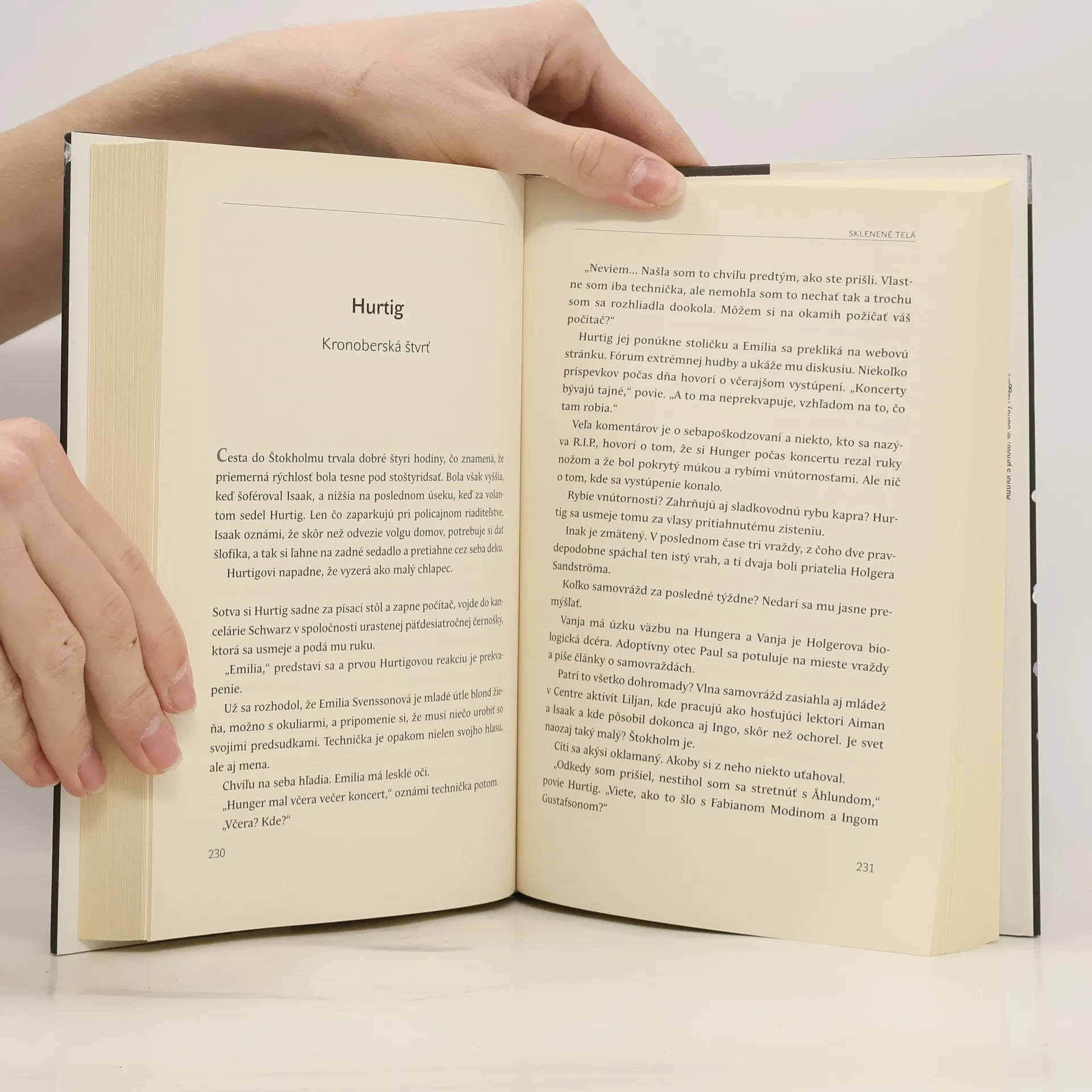 Drsný triler o hudbe a umení, fanatizme, nenávisti, láske a pomste! Švédsko zaplavila vlna samovrážd. Zarážajúce je, že umierajú prevažne mladí ľudia. Pri ich telách sa našli volkmeny a staré kazety z osemdesiatych rokov s mixovanou hudbou. Ukáže sa, že všetky kazety patrili jednej žene. V súvislosti so samovraždami sa vynorí veľa ďalších podozrivých skutočností a vyšetrovateľ Jens Hurtig sa ich podujme objasniť. Čoskoro pribudnú nové prípady, tentoraz ide o brutálne vraždy vplyvných mužov. Čo ich spája so samovraždami tínedžerov a so záhadnou ženou? A ako súvisia so životnými osudmi Jensových priateľov? Sklenené telá je drsný triler o hudbe a umení, túžbe a rezignácii, náboženskom fanatizme, nenávisti, láske a pomste – zavedú čitateľov do najtemnejších kútov psychiky ľudí, ktorí sú pre svoje umenie schopní všetkého.