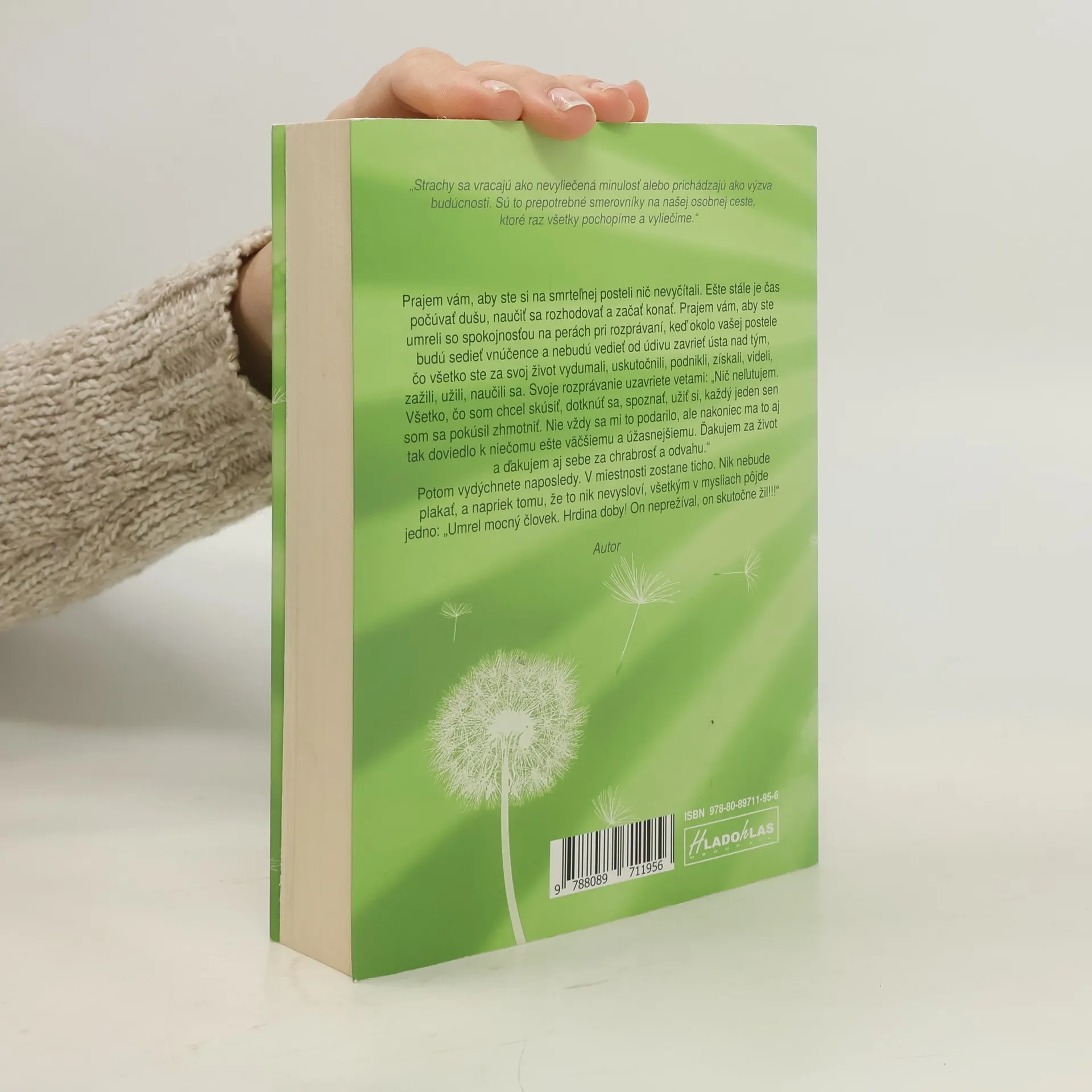 Prajem vám, aby ste si na smrteľnej posteli nič nevyčítali. Ešte stále je čas počúvať dušu, naučiť sa rozhodovať a začať konať. Prajem vám, aby ste umreli so spokojnosťou na perách pri rozprávaní, keď okolo vašej postele budú sedieť vnúčence a nebudú vedieť od údivu zavrieť ústa nad tým, čo všetko ste za svoj život vydumali, uskutočnili, podnikli, získali, videli, zažili, užili, naučili sa. Svoje rozprávanie uzavriete vetami: „Nič neľutujem. Všetko, čo som chcel skúsiť, dotknúť sa, spoznať, užiť si, každý jeden sen som sa pokúsil zhmotniť. Nie vždy sa mi to podarilo, ale nakoniec ma to aj tak doviedlo k niečomu ešte väčšiemu a úžasnejšiemu. Ďakujem za život a ďakujem aj sebe za chrabrosť a odvahu.“ Potom vydýchnete naposledy. V miestnosti zostane ticho. Nik nebude plakať a napriek tomu, že to nik nevysloví, všetkým v mysliach pôjde jedno: „Umrel mocný človek. Hrdina doby! On neprežíval, on skutočne žil!!!“ Autor