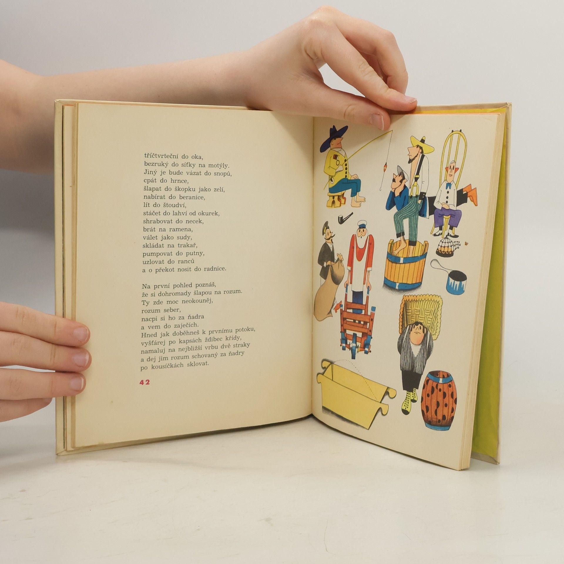Sbírka úžasných říkánek, básní atp., minimálně jedna lehce fantaskní. Náruč náročnějších i zcela nenáročných vyprávěnek a nápadů s báječnými ilustracemi Vladimíra Fuky. LA MANCHE Naše Fanče u La Manche šlápla bosky na saranče. Paleček jí opuchl na velikost lopuchu. To se stalo Fanče loni u La Manche. Fuka a Kolář vytvářejí společně dvě pozoruhodné knihy: „V sedmém nebi" a „Nápady pana Apríla". První dostává v roce 1966 Zlatou medaili „Medaglia d´Oro" na prestižním veletrhu v Bologni. Této soutěže se účastní světové kapacity knižní ilustrace. Pamatuji se, s jakým napětím jsme sledovali poslední finalisty. Druhá kniha, „Nápady pana Apríla", vyjde znovu v roce 2005 v mladém italském nakladatelství.