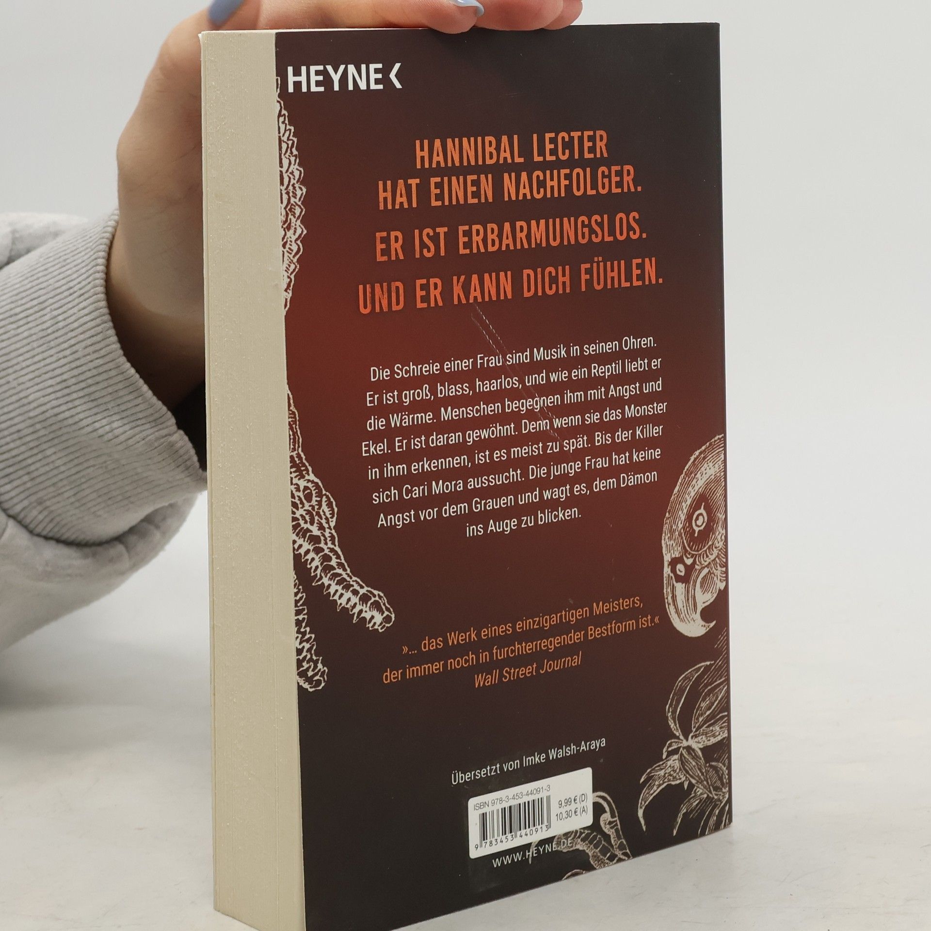 Er ist erbarmungslos. Und er kann dich fühlen. Millionen Leser haben das teuflische Spiel zwischen Serienkiller Hannibal Lecter und FBI-Agentin Clarice Starling verfolgt. In der kongenialen Verfilmung mit Anthony Hopkins und Jodie Foster kamen Millionen Zuschauer hinzu. Jetzt ist Thomas Harris zurück und schickt einen Killer ins Rennen, der erneut für schlaflose Nächte sorgt. Die Schreie einer Frau sind Musik in seinen Ohren. Er ist groß, blass, haarlos, und wie ein Reptil liebt er die Wärme. Menschen begegnen ihm mit Angst und Ekel. Er ist daran gewöhnt. Denn wenn sie das Monster in ihm erkennen, ist es meist zu spät. Bis der Killer sich Cari Mora aussucht. Die junge Frau hat keine Angst vor dem Grauen und wagt es, dem Dämon ins Auge zu blicken.