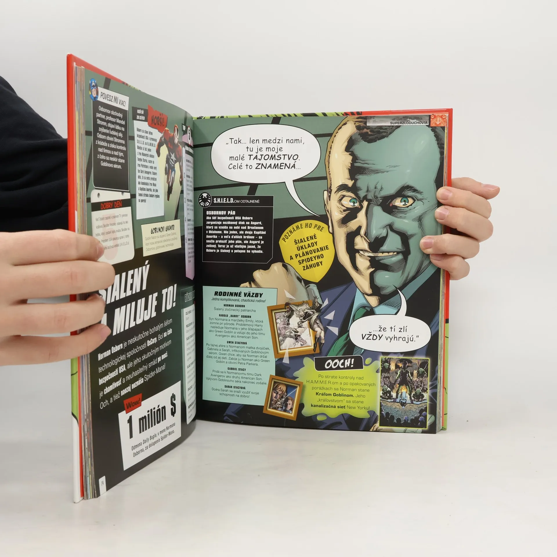 Hulk dokáže svojich protivníkov zraziť na zem aj obyčajným tlesknutím rúk. Keď niekto usekne Doktorovi Ockovi chápadlá, vie si ich rýchlo privolať späť príkazom: „Vráťte sa k pánovi!“ Punisher raz zabil úplne všetkých vrátane seba! Čo je malé, zelené, slizké a má schopnosti Thora? Predsa Throg – žabiak hromu!