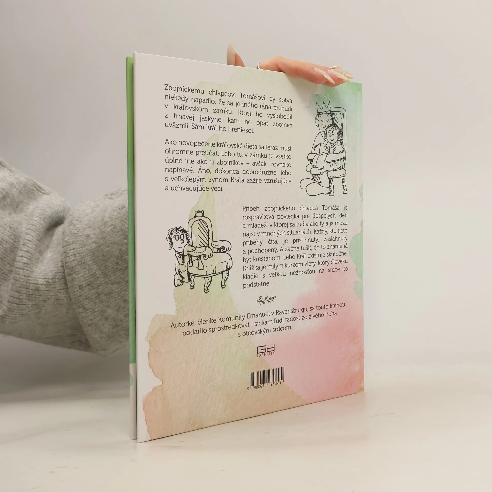 Príbeh zbojníckeho chlapca Tomáša je rozprávková poviedka pre dospelých, deti a mládež, v ktorej sa ľudia ako ty a ja môžu nájsť v mnohých situáciách. Každý, kto tieto príbehy číta, je pristihnutý, zasiahnutý a pochopený. A začne tušiť, čo to znamená byť kresťanom. Lebo Kráľ existuje skutočne. Knižka je milým kurzom viery, ktorý človeku kladie s veľkou nežnosťou na srdce to podstatné.