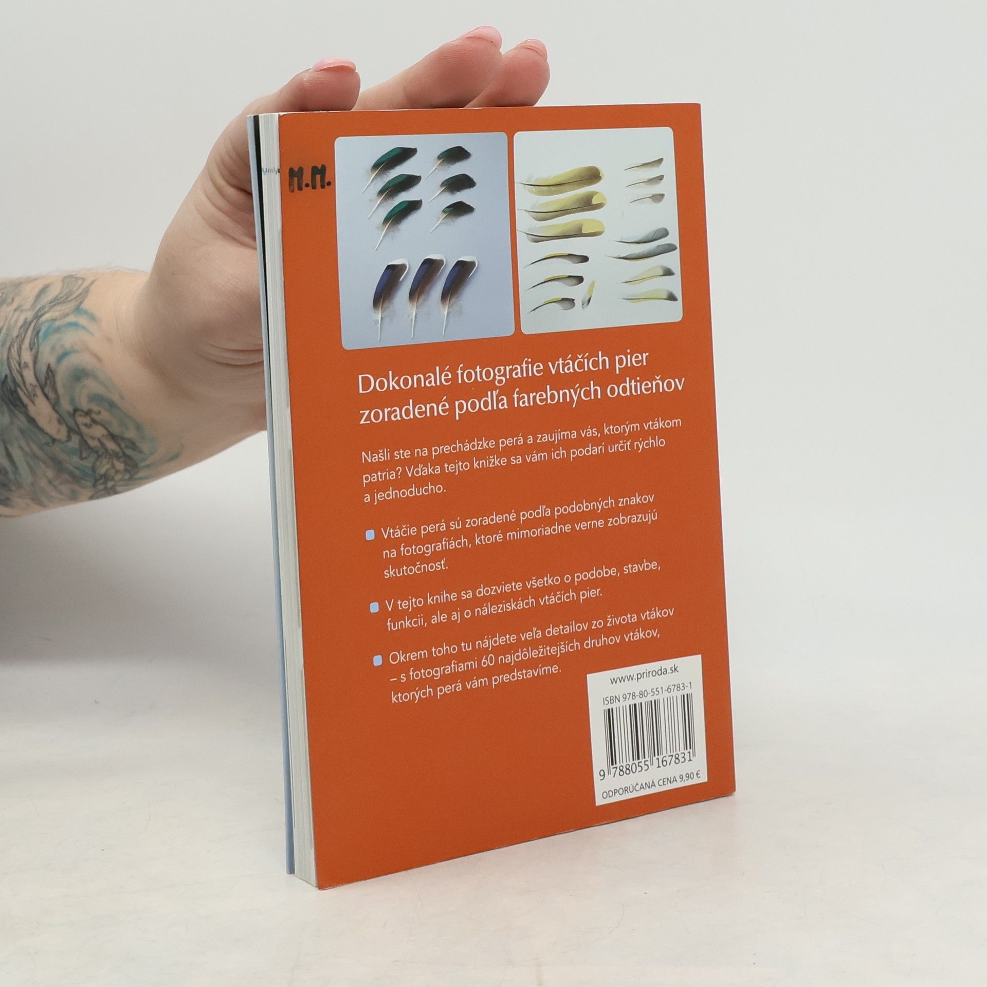 Dokonalé fotografie vtáčích pier zoradené podľa farebných odtieňov Našli ste na prechádzke perá a zaujíma vás, ktorým vtákom patria? Vďaka tejto knižke sa vám ich podarí určiť rýchlo a jednoducho. - Vtáčie perá sú zoradené podľa podobných znakov na fotografiách, ktoré mimoriadne verne zobrazujú skutočnosť. - V tejto knihe sa dozviete všetko o podobe, stavbe, funkcii, ale aj náleziskách vtáčích pier. - Okrem toho tu nájdete veľa detailov zo života vtákov – s fotografiami 60 najdôležitejších druhov vtákov, ktorých perá vám predstavíme.