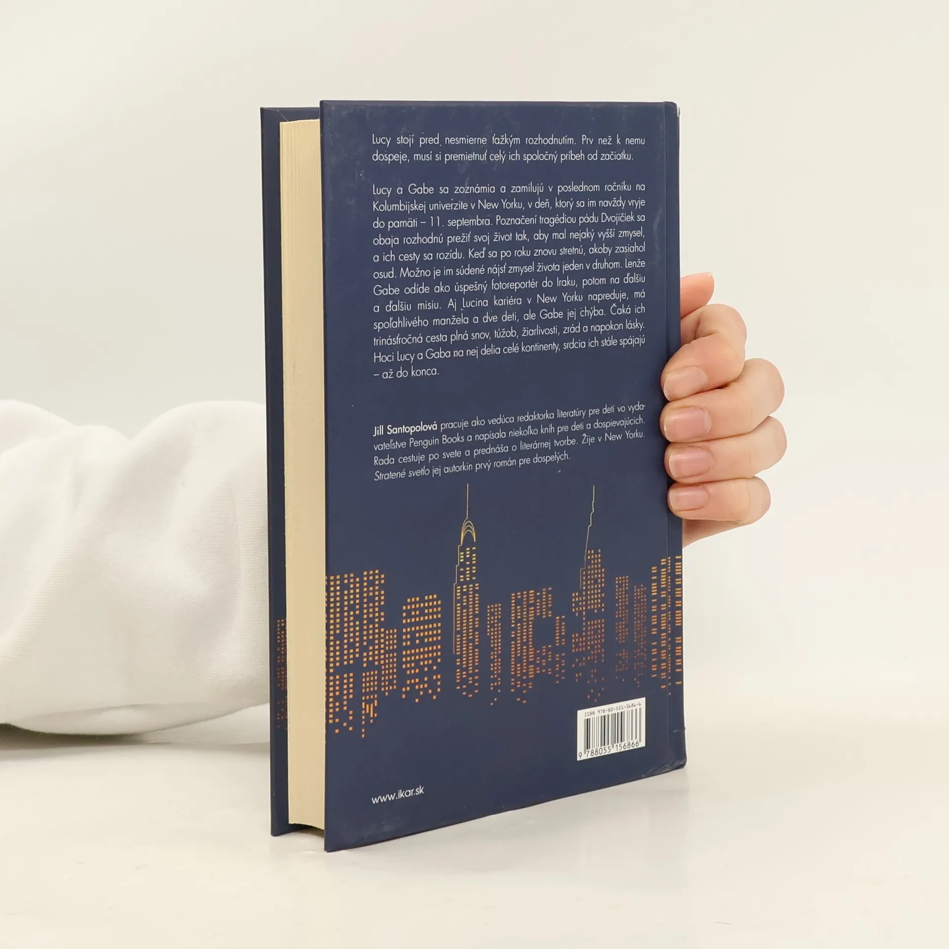 Lucy stojí pred nesmierne ťažkým rozhodnutím. Prv než k nemu môže dospieť, musí si premietnuť celý svoj príbeh, vlastne ich príbeh, celkom od začiatku. Lucy a Gabe sa zoznámia v poslednom ročníku na Kolumbijskej univerzite v New Yorku v deň, ktorý navždy zmení ich životy. Spolu sa rozhodnú prežiť svoje životy tak, aby mali nejaký vyšší zmysel. Keď sa po roku znovu stretnú, akoby zasiahol osud. Možno je im súdené nájsť zmysel života jeden v druhom. Lenže potom sa Gabe stane fotoreportérom a vyšlú ho na Stredný východ. Žne úspechy a z jednej misie je ďalšia a ďalšia. Lucina kariéra sa rozvíja v New Yorku. Nasleduje trinásťročná cesta plná snov, túžob, žiarlivosti, zrád a napokon lásky. Naozaj im to nadelil osud alebo ich rozdelili ich vlastné rozhodnutia? Hoci Lucy a Gaba na tej ceste delia celé kontinenty, srdcia ich stále spájajú. Stratené svetlo je autorkin prvý román pre dospelých. Je to romantický príbeh o pretrvávajúcej sile prvej lásky so šokujúcim, nezabudnuteľným koncom.