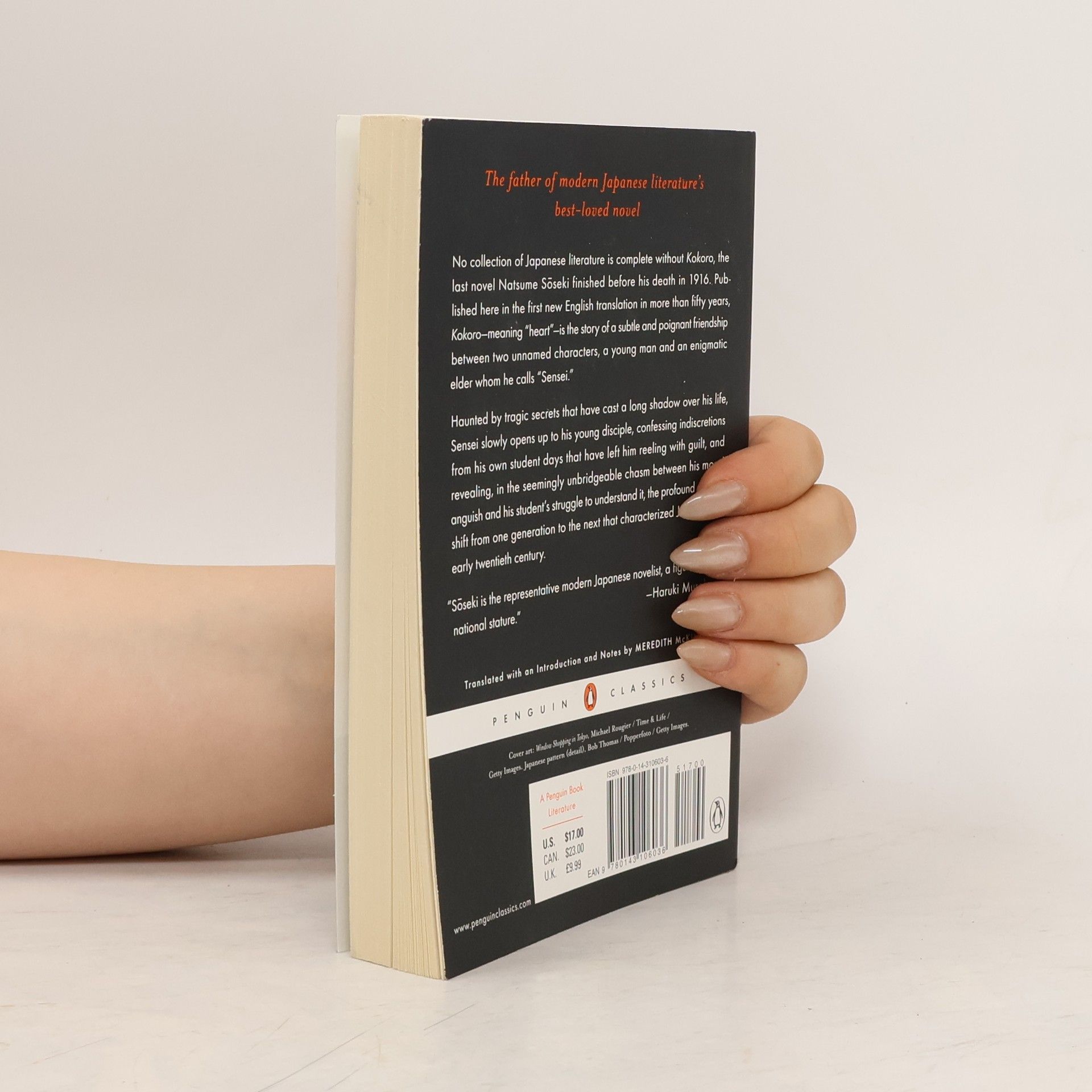 "No collection of Japanese literature is complete without Kokoro, the last novel Natsume Soseki complete before his death in 1916. Published here in the first new translation in more than fifty years, Kokoro--meaning "heart"--Is the story of a subtle and poignant friendship between two unnamed characters, a young man and an enigmatic elder whom he calls "Sensei". Haunted by tragic secrets that have cast a long shadow over his life, Sensei slowly opens up to his young disciple, confessing indiscretions from his own student days that have left him reeling with guilt, and revealing, in the seemingly unbridgeable chasm between his moral anguish and his student's struggle to understand it, the profound cultural shift from one generation to the next that characterized Japan in the early twentieth century"--Page 4 of cover