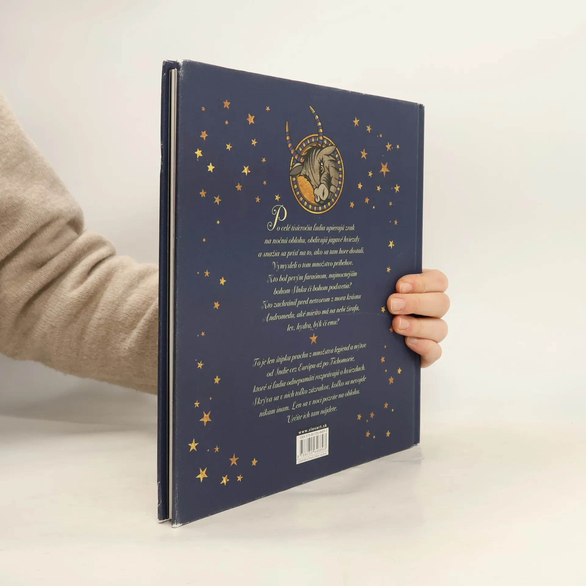 Mýty a legendy zo všetkých kútov sveta Po celé tisícročia ľudia upierajú zrak na nočnú oblohu, obdivujú jagavé hviezdy a snažia sa prísť na to, ako sa tam hore dostali. Vymysleli o tom množstvo príbehov. Kto bol prvým faraónom, najmocnejším bohom Slnka či bohom podsvetia? Kto zachránil pred netvorom z mora krásnu Andromedu aké miesto má na nebi žirafa, lev, hydra, býk či emu? To je len štipka prachu z množstva legiend a mýtov od Indie cez Európu až po Tichomorie, ktoré si ľudia odnepamäti rozprávajú o hviezdach. Skrýva sa v nich toľko zázrakov, koľko sa nevojde nikam inam. Len sa v noci pozrite na oblohu. Určite ich tam nájdete.