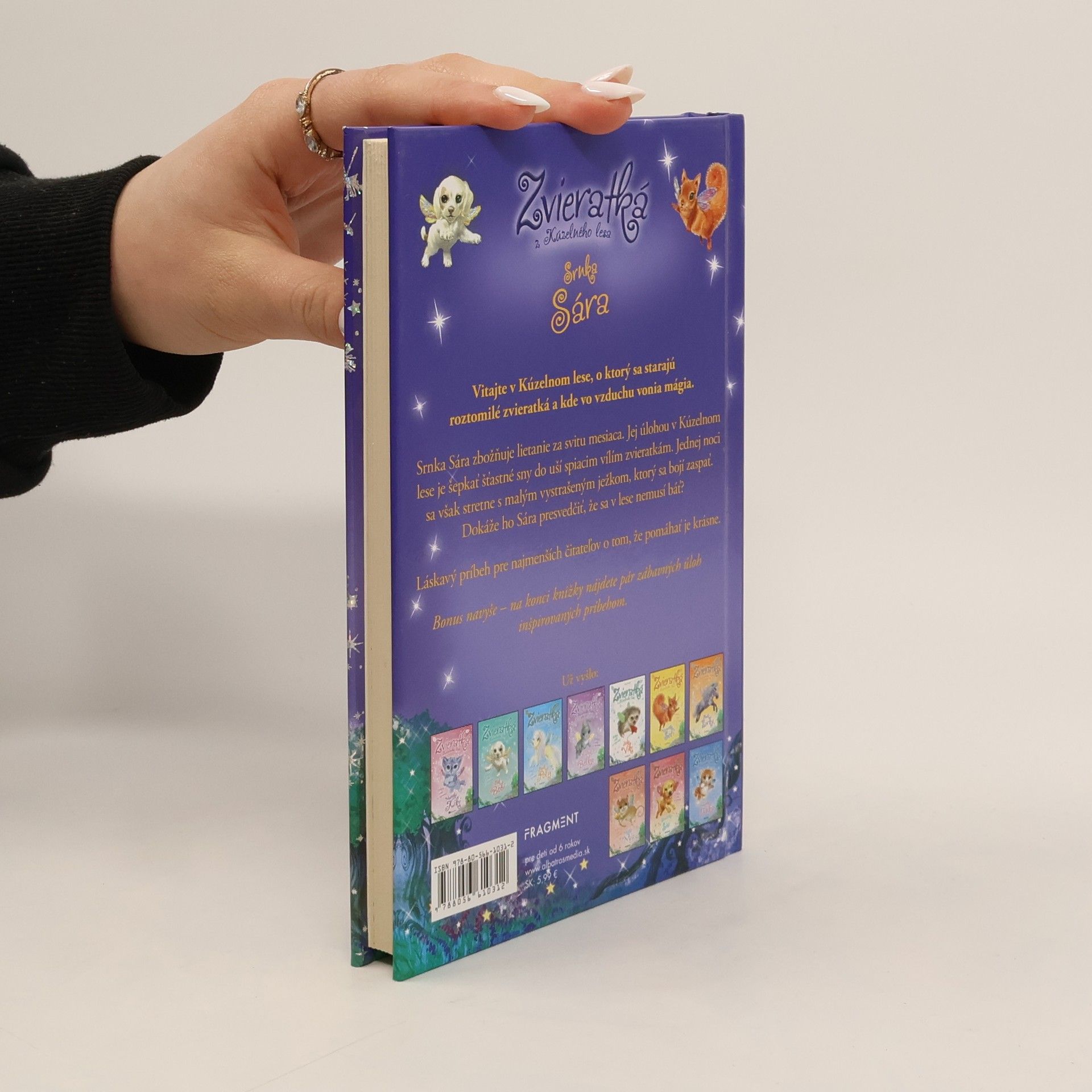 Vitajte v Kúzelnom lese, o ktorý sa starajú roztomilé zvieratká a kde vo vzduchu vonia mágia. Srnka Sára zbožňuje lietanie za svitu mesiaca. Jej úlohou v Kúzelnom lese je šepkať šťastné sny do uší spiacim vílím zvieratkám. Jednej noci sa však stretne s malým vystrašeným ježkom, ktorý sa bojí zaspať. Dokáže ho Sára presvedčiť, že sa v lese nemusí báť? Láskavý príbeh pre najmenších čitateľov o tom, že pomáhať je krásne. Bonus navyše – na konci knižky nájdete pár zábavných úloh inšpirovaných príbehom.