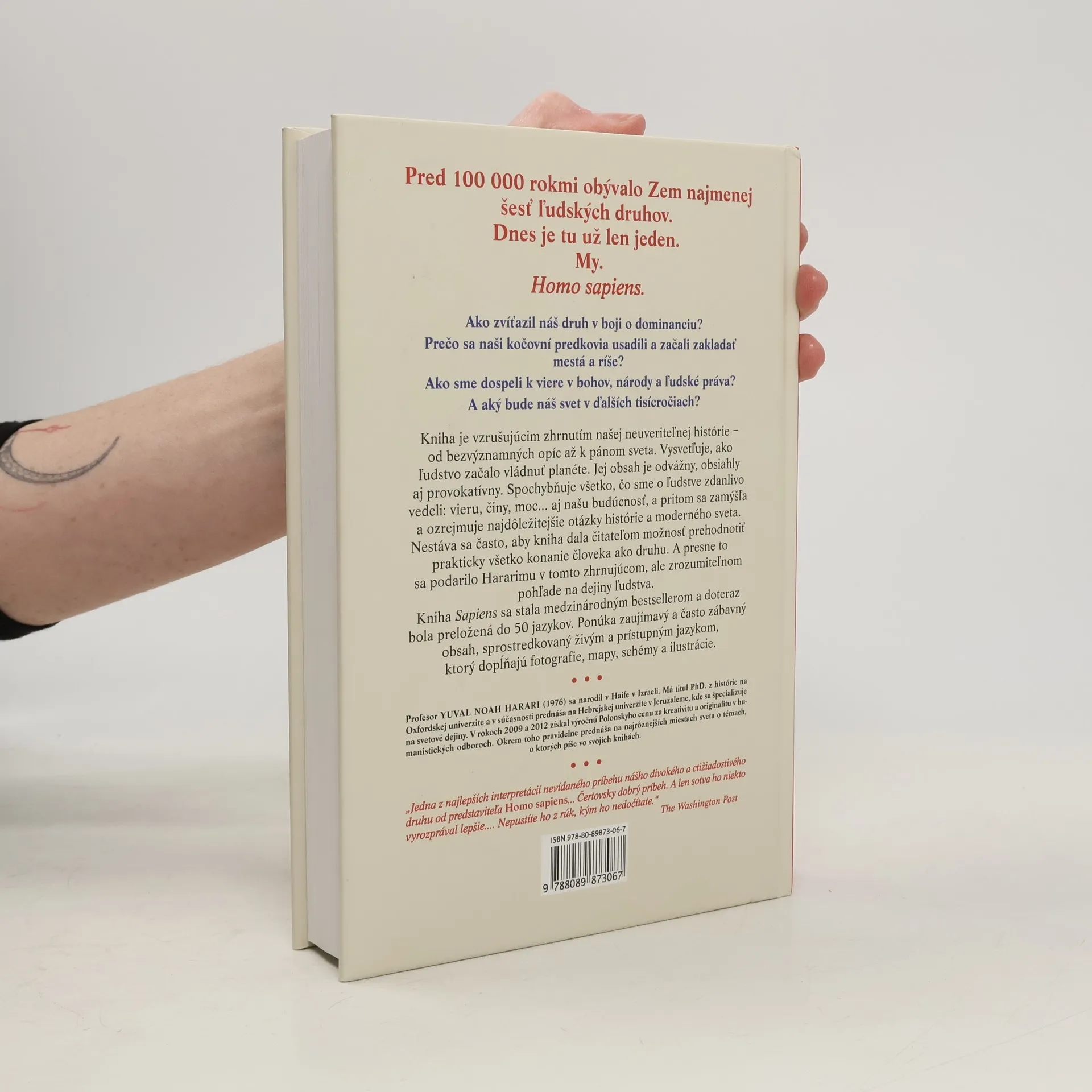 Pred 100 000 rokmi žilo na Zemi najmenej šesť ľudských druhov, dnes je tu len Homo sapiens. Autor, Dr. Yuval Noah Harari, známy vizionársky historik, skúma históriu človeka od jeho počiatkov až po súčasnosť, pričom sa zameriava na tri kľúčové revolúcie: kognitívnu, poľnohospodársku a vedeckú. Kniha sa pýta, ako sme sa stali dominantným druhom, prečo sa naši predkovia usadili a začali budovať mestá a ríše, a aký vplyv má na nás viera v bohov, národy či ľudské práva. Harari čerpá z rôznych disciplín, ako sú história, biológia a ekonómia, aby preskúmal, ako formovali naše spoločnosti a vzťahy s prírodou. Klade otázky o našej šťastnej existencii, o tom, či môžeme oslobodiť naše správanie od dedičstva predkov, a čo môžeme urobiť pre ovplyvnenie budúcnosti. Kniha provokuje zamyslenie nad našou históriou a budúcnosťou, pričom skúma vplyv ľudského správania a vedeckého pokroku na zákony prírody. Tento vzrušujúci prehľad našej histórie, od bezvýznamných opíc po pánov sveta, spochybňuje naše presvedčenia a činy. Harari ponúka čitateľom možnosť prehodnotiť všetko, čo sme o ľudstve vedeli. Kniha sa stala medzinárodným bestsellerom, je písaná živým jazykom a doplnená o fotografie, mapy a ilustrácie, čo zvyšuje jej atraktivitu.