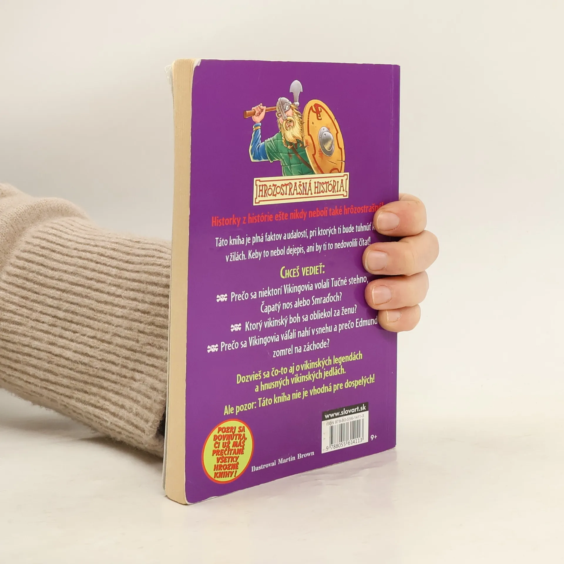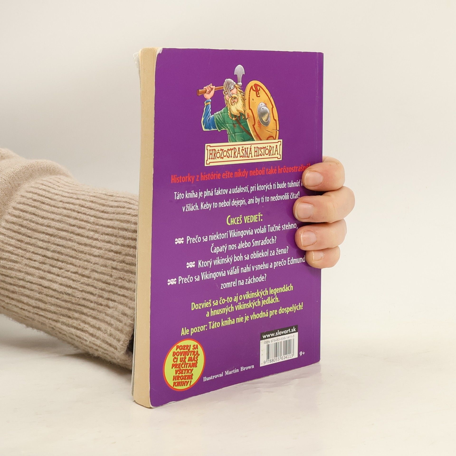 Pravda o Vikingoch je často zaobaľovaná do ich hrdinských činov. Akí ale v skutočnosti Vikingovia boli? Koľko krutosti, krvi a utrpenia niesli na svojich štítoch, o tom rozpráva titul z edície Hrôzostrašná história. História je hrôzostrašná. A preto sa ju musia učiť deti – dospelí by to nezvládli. To vieš, keď ľudia starnú, menia sa. Nám mladým vôbec nezaškodí trošku zdravého hororu... Konečne máš v rukách knihu, kde sa dozvieš všetko – úplne všetko! Žiaden učiteľ by ti nikdy nepovedal celú pravdu o krutých Vikingoch. Pretože učitelia na to nemajú nervy! Uvidíš, ako sa vaša dejepisárka roztrasie, keď jej detailne opíšeš vikingské zlepšováky... na mučenie! Vychutnaj si dejepisára, kým sa zosype, keď mu porozprávaš, ako Sigurda zabil... mŕtvy muž!