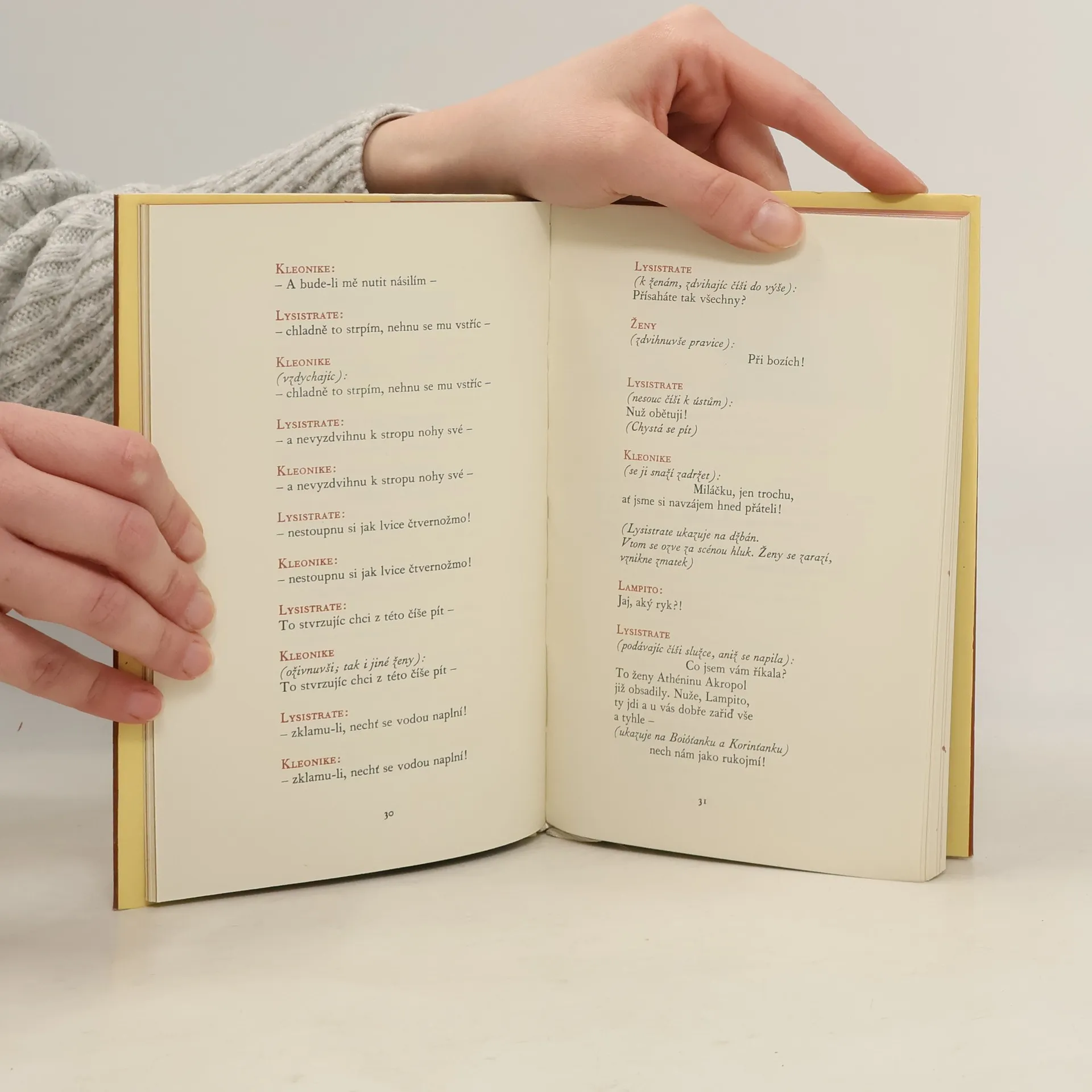 U nás nejčastěji uváděná komedie starořeckého dramatika patří mezi klenoty antické literatury. Titulní hrdinka hry Lýsistraté přesvědčí athénské, spartské a další ženy z řeckých států, které se účastní Peloponéské války, aby přinutily své muže k uzavření míru. Její nápad odmítnout mužům naplnění jejich erotických tužeb vede po všech peripetiích k vítěznému cíli.