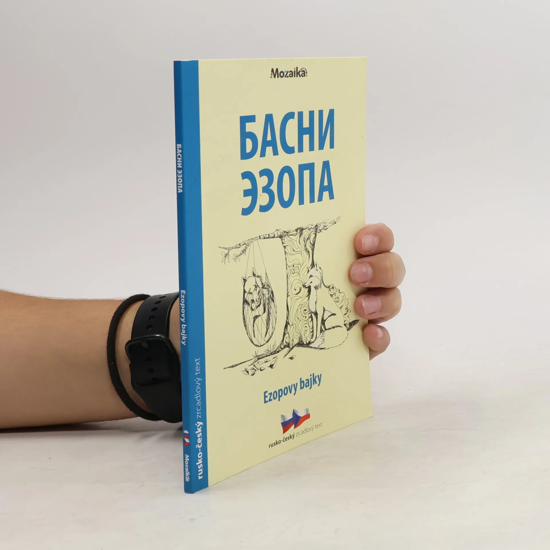 Ezop je považován za zakladatele řecké bajky a patří dodnes k nejznámějším bajkařům. Narodil se pravděpodobně jako otrok, po propuštění z otroctví hodně cestoval. Své bajky přenášel ústně, byly zapsány mnohem později. Šlo o krátké prozaické příběhy se stručným dějem, v nichž vystupovala ustálená skupina postav, zvláště zvířata a rostliny, které přebírají lidské vlastnosti. Mnohdy se objevují také skuteční lidé a postavy řeckých bohů. Dialog dává bajkám spád, posiluje dramatičnost a dynamiku příběhů. Některé bajky obsahují - většinou na konci - didaktické poučení. Zrcadlový ruský a český text, pomůcky ke slovní zásobě.