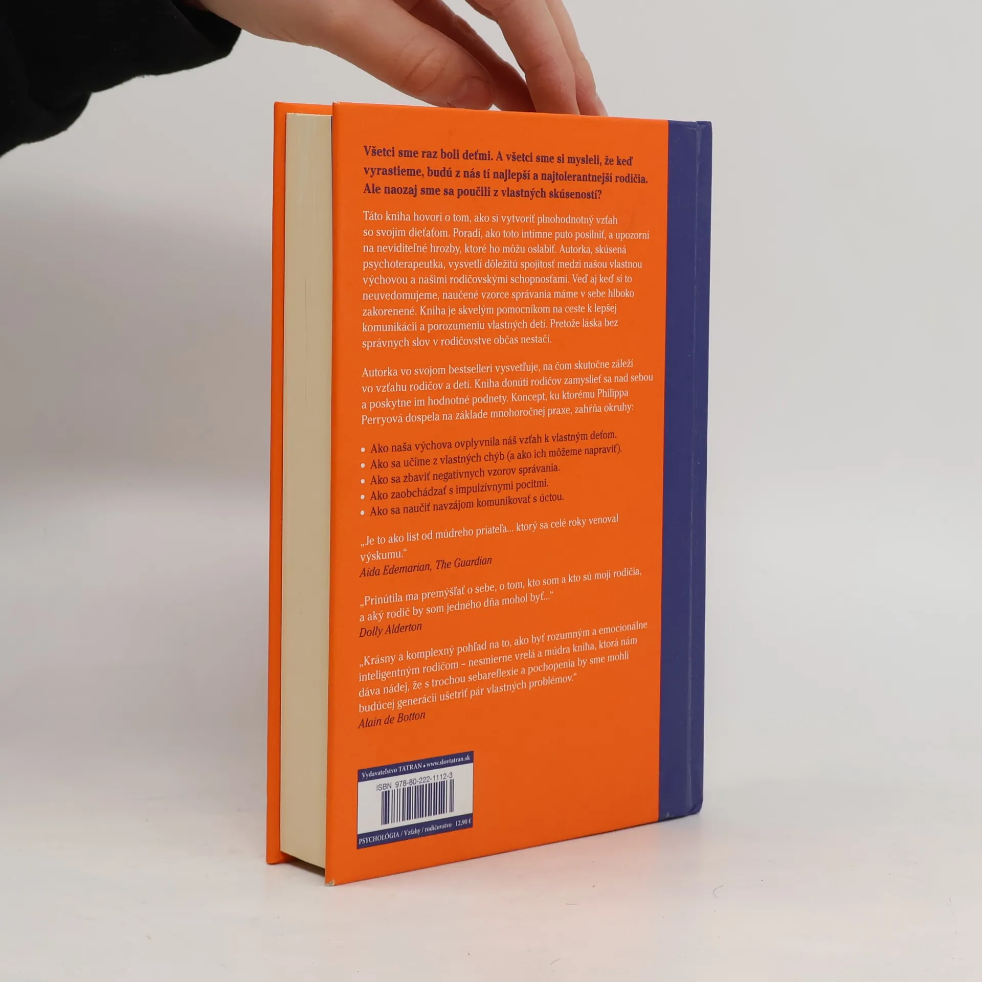 Všetci sme raz boli deťmi. A všetci sme si mysleli, že keď vyrastieme, budú z nás tí najlepší a najtolerantnejší rodičia. Ale naozaj sme sa poučili z vlastných skúseností? Táto kniha hovorí o tom, ako si vytvoriť plnohodnotný vzťah so svojím dieťaťom. Poradí, ako toto intímne puto posilniť, a upozorní na neviditeľné hrozby, ktoré ho môžu oslabiť. Autorka, skúsená psychoterapeutka, vysvetlí dôležitú spojitosť medzi našou vlastnou výchovou a našimi rodičovskými schopnosťami. Veď aj keď si to neuvedomujeme, naučené vzorce správania máme v sebe hlboko zakorenené. Kniha je skvelým pomocníkom na ceste k lepšej komunikácii a porozumeniu vlastných detí. Pretože láska bez správnych slov v rodičovstve občas nestačí.