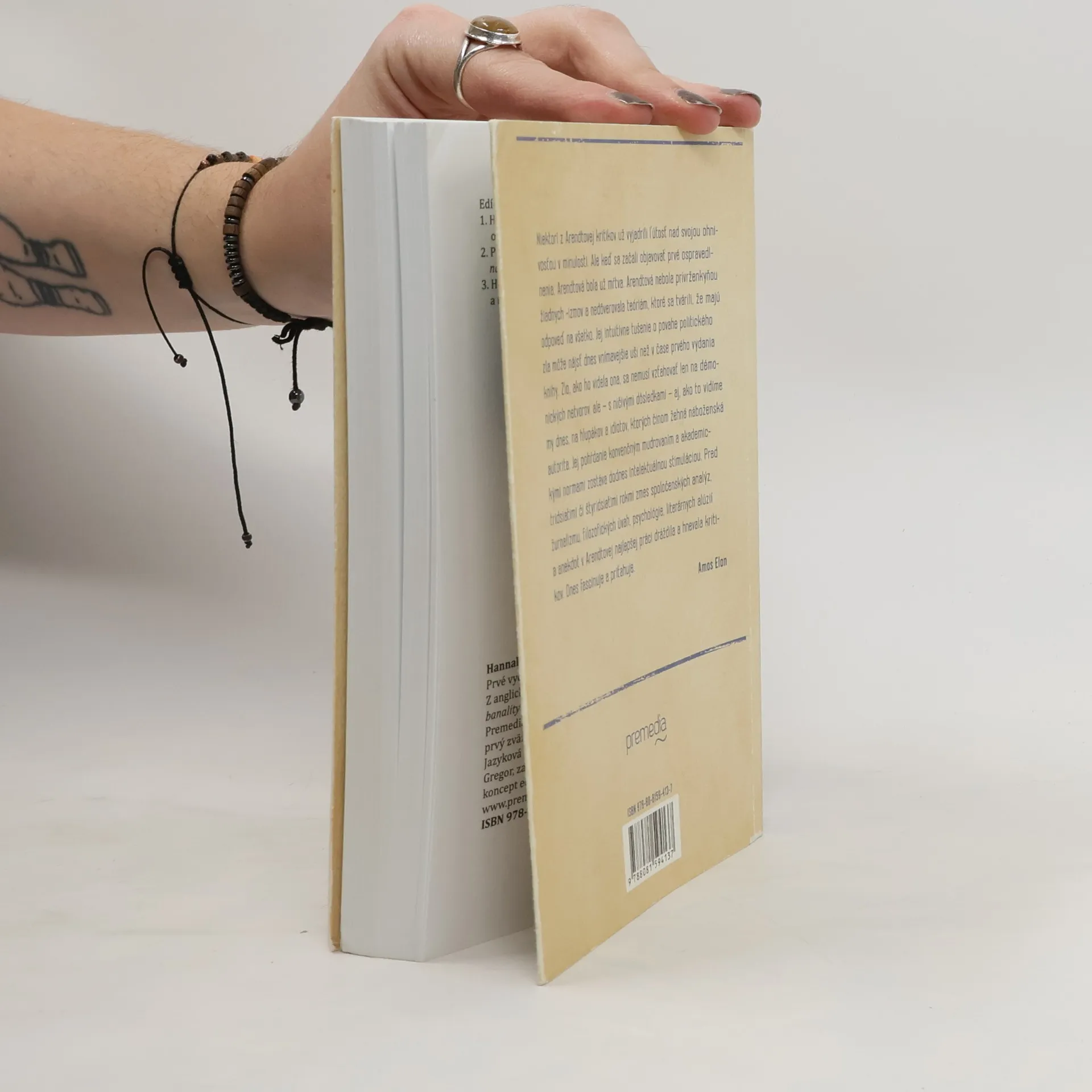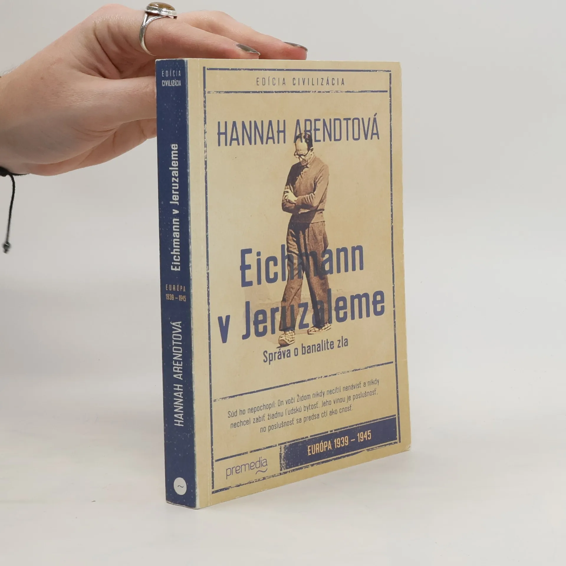 Kniha o súdnom procese s nacistickým zločincom Adolfom Eichmannom v roku 1961 vyvolala v čase svojho prvého vydania veľký záujem, ale aj pobúrenie. Eichmanna uniesli z Argentíny do Izraela, kde bol obvinený, že bol jedným z hlavných strojcov konečného riešenia židovskej otázky. Kniha koncipovaná ako reportáž je zároveň historickým svedectvom, filozofickou úvahou a pojednaním o rôznych výkladoch práva. Opakuje sa v nej dilema z norimberských procesov, kde sa obžalovaní obhajovali tým, že len poslúchali rozkazy. Arendtová napísala nepohodlnú knihu. Jej portrét Eichmanna nezodpovedal tradičnej predstave vojnového zločinca ako psychopata a brutálneho vraha, namiesto toho tu máme podivný produkt svojej doby s dušou byrokrata. Vášnivé diskusie vyvolali jej pasáže o židovských radách, ktoré sa svojim spôsobom podieľali na hladkom priebehu likvidácie židovského obyvateľstva. Tretí problém sa týkal jej kritiky samotného procesu a spôsobu, akým bol vedený. Dnes, s odstupom viac než päťdesiatich rokov, kniha patrí medzi najvýraznejšie míľniky v uvažovaní nielen o holokauste, ale aj o rizikách modernej spoločnosti.
