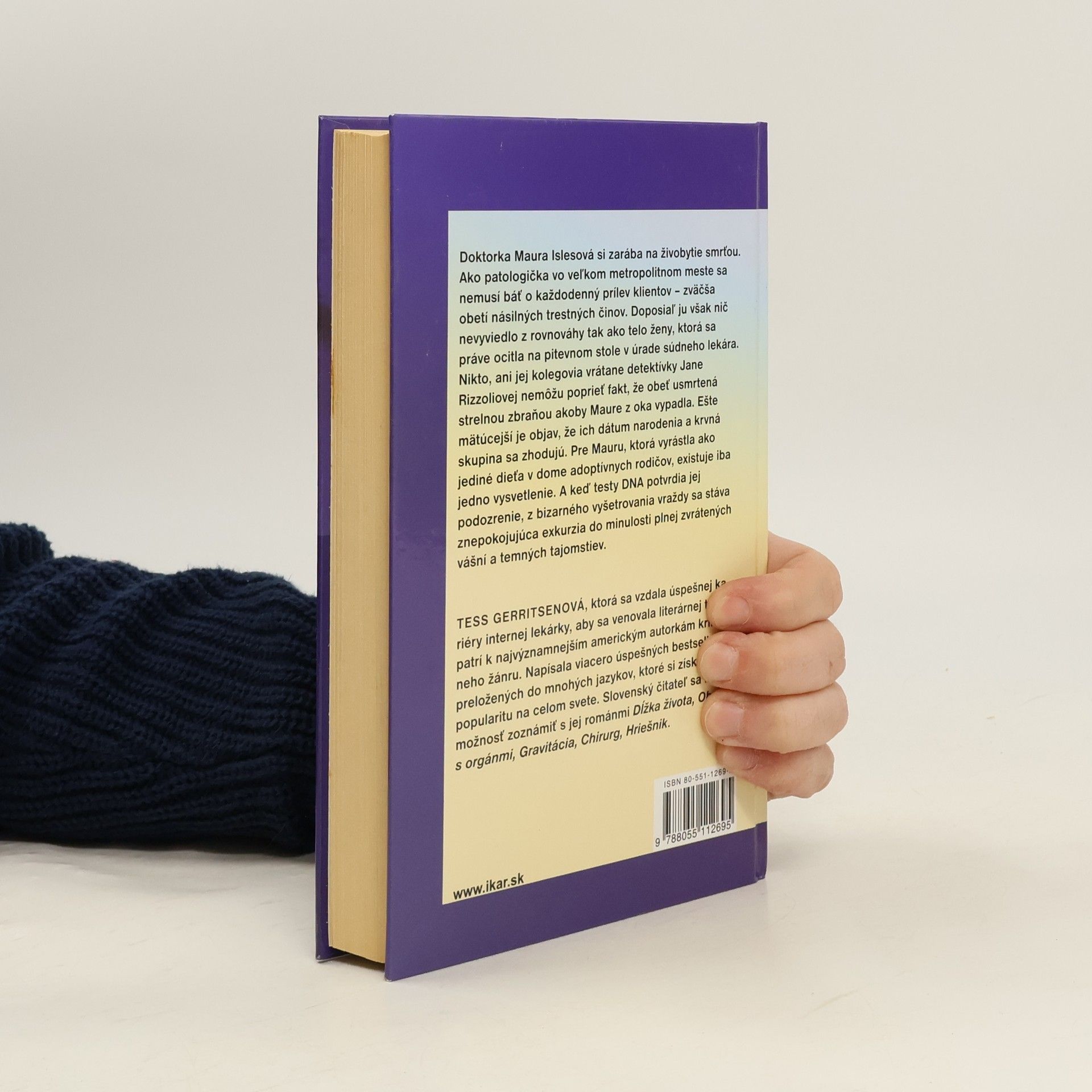 Doktorka Maura Islesová si zarába na živobytie smrťou. Ako patologička vo veľkom metropolitnom meste sa nemusí báť o každodenný prílev klientov – zväčša obetí násilných trestných činov. Nikdy doposiaľ ju však nič nevyviedlo z rovnováhy tak ako telo ženy, ktorá sa práve ocitla na pitevnom stole v úrade súdneho lekára. Nikto, ani jej kolegovia vrátane detektívky Jane Rizzoliovej nemôžu poprieť fakt, že obeť usmrtená strelnou zbraňou akoby Maure z oka vypadla. Ešte mätúcejší je objav, že ich dátum narodenia a krvná skupina sa zhodujú. Pre Mauru, ktorá vyrástla ako jediné dieťa v dome adoptívnych rodičov, existuje iba jedno vysvetlenie. A keď testy DNA potvrdia jej podozrenie, z bizarného vyšetrovania vraždy sa stáva znepokojujúca exkurzia do minulosti plnej zvrátených vášní a temných tajomstiev. Najznepokojujúcejšia je však obava, že človek, ktorý Maure zrejme daroval život, môže jej ho aj vziať.