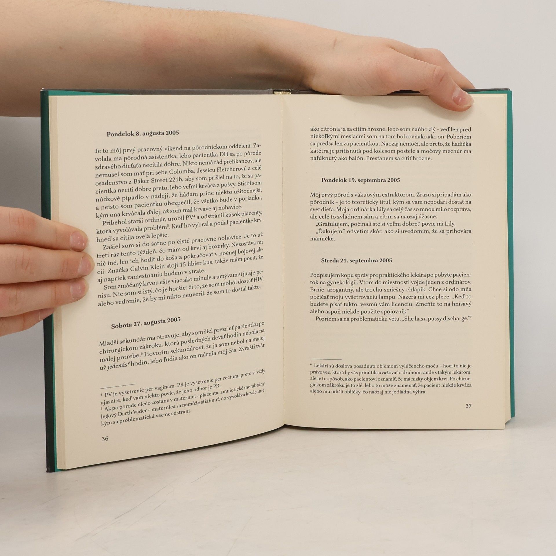 Vitajte vo svete, kde má týždeň deväťdesiatsedem pracovných hodín. Vitajte vo svete, kde sa rozhoduje o živote a smrti. Vitajte vo svete nepretržitého vlnobitia telesných tekutín. Vitajte vo svete, kde zarábate menej ako automat na nemocničnom parkovisku. Zamávajte na rozlúčku svojim priateľom a vzťahom. Vitajte v živote mladého lekára. Nekonečné dni a bezsenné noci, prácou naplnené víkendy – o tom sú zápisky v denníku Adama Kaya, ktorý sa ocitol v prvej línii britského zdravotníctva. Jeho príbehy sú striedavo veselé, hrozné, ale aj smutné. Do podrobností a bez zábran v nich opisuje, čo všetko musel robiť a čím musel prejsť. Áno, zanechali mu jazvu na duši.