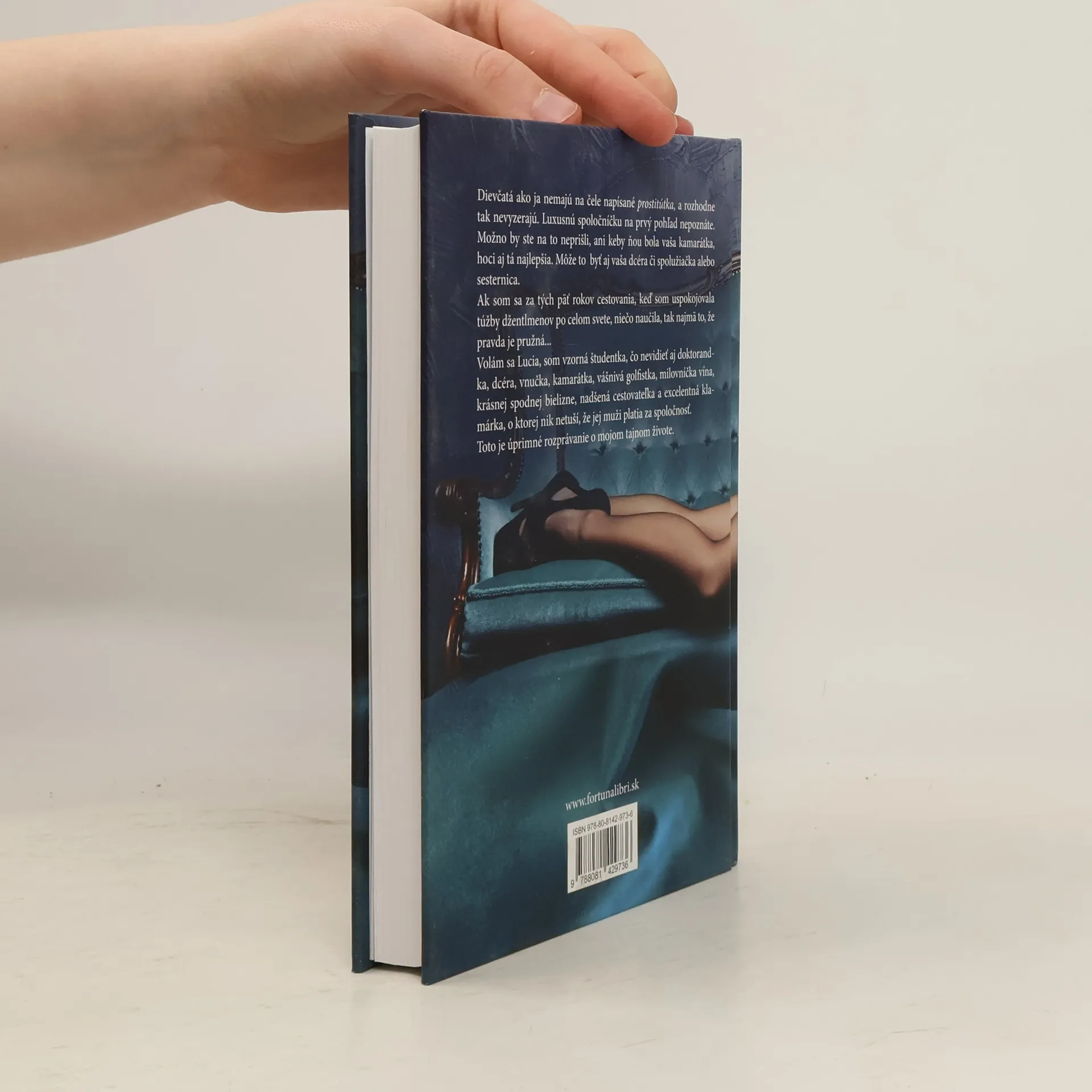 „Dievčatá ako ja nemajú na čele napísané prostitútka, a rozhodne tak nevyzerajú. Luxusnú spoločníčku na prvý pohľad nespoznáte. Možno by ste na to neprišli, ani keby ňou bola vaša kamarátka, hoci aj tá najlepšia. Môže to byť aj vaša dcéra či spolužiačka alebo sesternica. Ak som sa za tých päť rokov cestovania, keď som uspokojovala túžby džentlmenov po celom svete, niečo naučila, tak najmä to, že pravda je pružná. .. Volám sa Lucia, som vzorná študentka, čo nevidieť aj doktorandka, dcéra, vnučka, kamarátka, vášnivá golfistka, milovníčka vína, krásnej spodnej bielizne, nadšená cestovateľka a excelentná klamárka, o ktorej nik netuší, že jej muži platia za spoločnosť. Toto je úprimné rozprávanie o mojom tajnom živote. .. “
