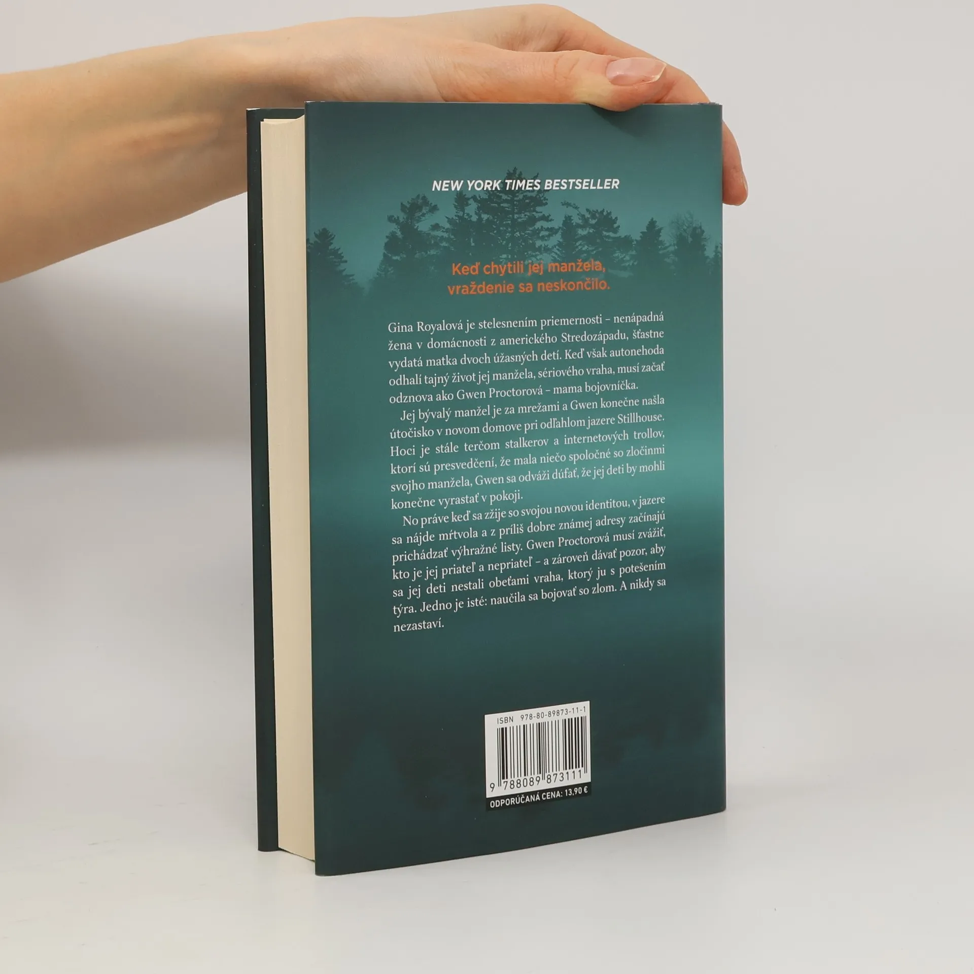 Čo ak je váš manžel sériový vrah? Keď chytili jej manžela, vraždenie sa neskončilo. Gina Royalová je stelesnením priemernosti – nenápadná žena v domácnosti z amerického Stredozápadu, šťastne vydatá matka dvoch úžasny´ch detí. Keď však autonehoda odhalí tajny´ život jej manžela, sériového vraha, musí začať odznova ako Gwen Proctorová – mama bojovníčka. Jej by´valy´ manžel je za mrežami a Gwen konečne našla útočisko v novom domove pri odľahlom jazere Stillhouse. Hoci je stále terčom stalkerov a internetovy´ch trollov, ktorí sú presvedčení, že mala niečo spoločné so zločinmi svojho manžela, Gwen sa odváži dúfať, že jej deti by mohli konečne vyrastať v pokoji. No práve keď sa zžije so svojou novou identitou, v jazere sa nájde mŕtvola a z príliš dobre známej adresy začínajú prichádzať vy´hražné listy. Gwen Proctorová musí zvážiť, kto je jej priateľ a nepriateľ – a zároveň dávať pozor, aby sa jej deti nestali obeťami vraha, ktory´ ju s potešením ty´ra. Jedno je isté: naučila sa bojovať so zlom. A nikdy sa nezastaví.