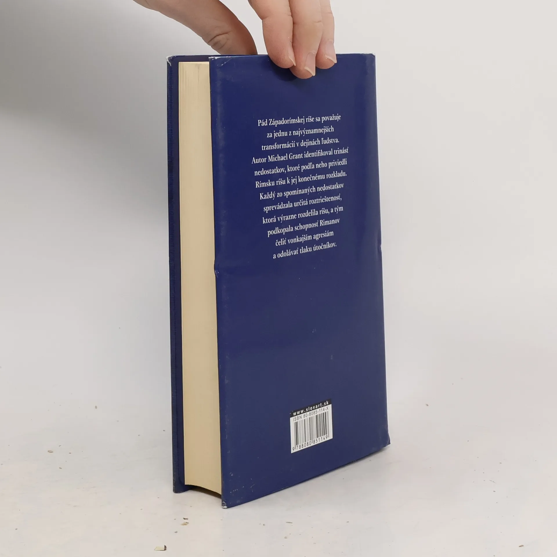 Pád Západorímskej ríše bol jednou z najvýznamnejších transformácií v celých dejinách ľudstva. Michael Grant identifikoval trinásť nedostatkov, ktoré pokladá za rozhodujúce pre zánik impéria. Tieto trhliny v spoločnosti antického Ríma rozdelili národ a zničili jeho schopnosť odolávať nepriateľským inváziám. V knihe skúma minulosť zrozumiteľne a do hĺbky, vnášajúc svetlo do tejto nekonečne fascinujúcej témy. Michael Grant je aj autorom knihy Dvanásť cisárov.