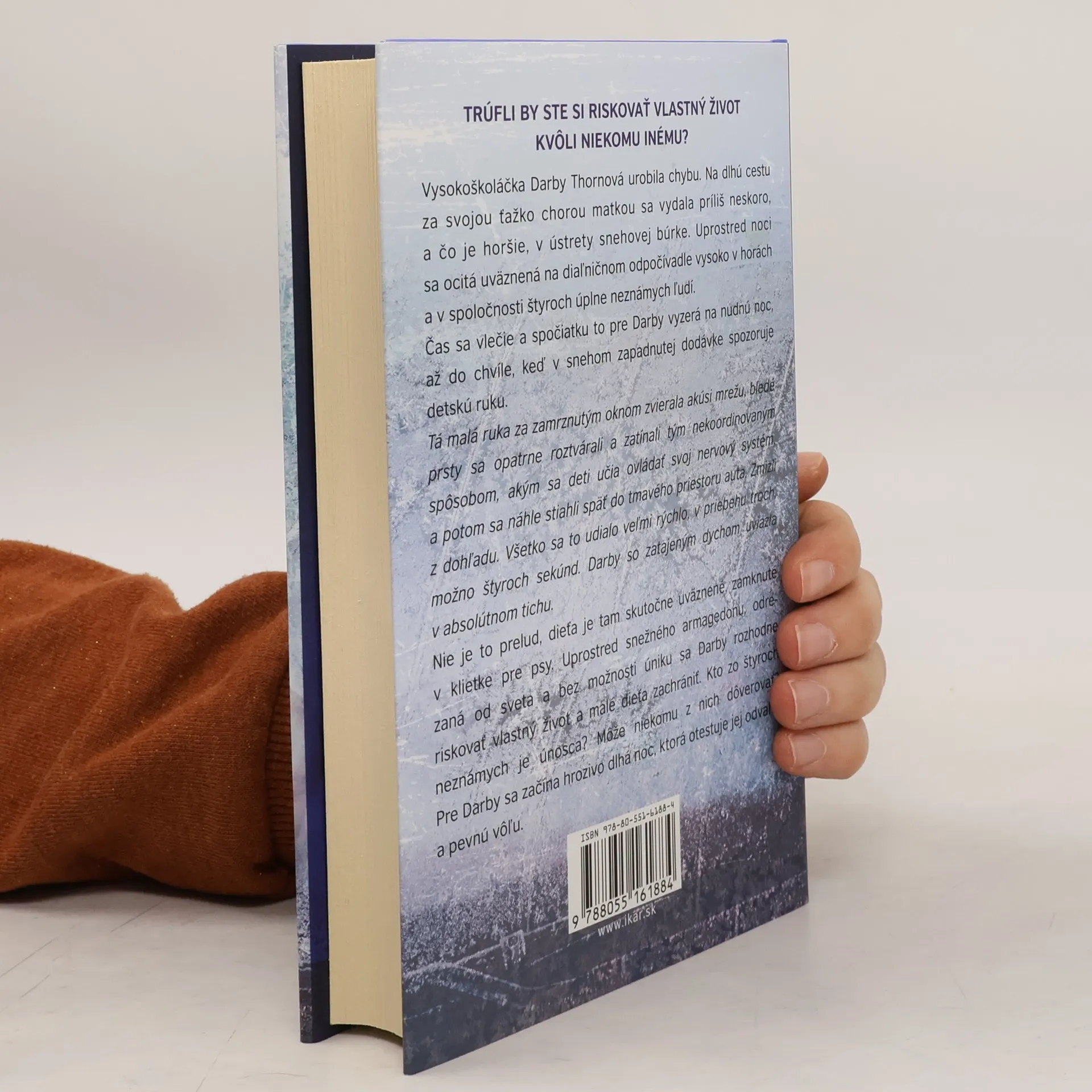 Vysokoškoláčka Darby Thornová uviazne v snehovej búrke na zastrčenom diaľničnom odpočívadle vysoko v horách. Cestuje za svojou ťažko chorou mamou, ale diaľnica je neprejazdná a túto noc musí preto stráviť so štyrmi úplne neznámymi ľuďmi. V snehom zapadnutej dodávke na parkovisku náhodou spozoruje detskú ruku. Nie je to prelud, dieťa je tam skutočne uväznené, zamknuté v klietke pre psy. Darby sa okamžite rozhodne dievčatko zachrániť. Uprostred snežného armagedonu, bez telefonického spojenia, bez možnosti úniku. Darby je odvážna, inteligentná, ale aj prchká a trochu ľahkomyseľná. Kto zo štyroch neznámych ľudí je únoscom a kto sa stane jej spojencom, keď pôjde do tuhého? V prvom rade sa však musí spoľahnúť len sama na seba a na svoju pevnú vôľu, lebo v ohrození je nielen život malého dievčatka, ale aj jej.