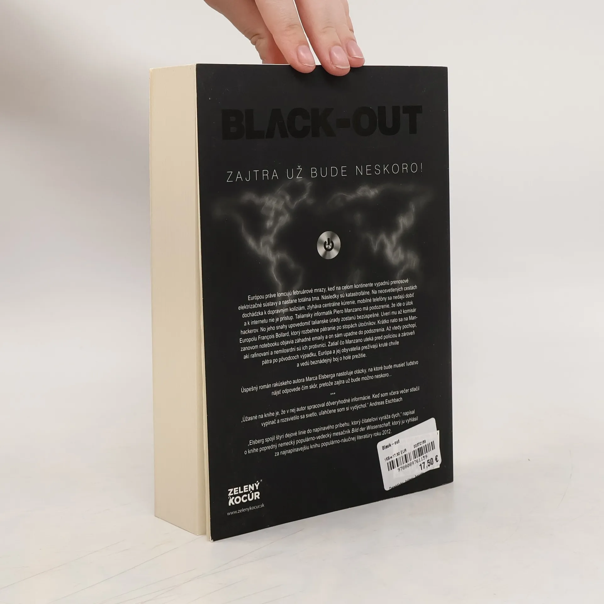 Zajtra už bude neskoro. Európou práve lomcujú februárové mrazy, keď na celom kontinente vypadnú prenosové elektrizačné sústavy a nastane totálna tma. Následky sú katastrofálne. Na neosvetlených cestách dochádzka k dopravným kolíziám, zlyháva centrálne kúrenie, mobilné telefóny sa nedajú dobiť a k internetu nie je prístup. Taliansky informatik Piero Manzano má podozrenie, že ide o útok hackerov. No jeho snahy upovedomiť talianske úrady zostanú bezúspešné. Uverí mu až komisár Europolu François Bollard, ktorý rozbehne pátranie po stopách útočníkov. Krátko nato sa na Manzanovom notebooku objavia záhadné emaily a on sám upadne do podozrenia. Až vtedy pochopí, akí rafinovaní a nemilosrdní sú ich protivníci. Zatiaľ čo Manzano uteká pred políciou a zároveň pátra po pôvodcoch výpadku, Európa a jej obyvatelia prežívajú kruté chvíle a vedú beznádejný boj o holé prežitie. Úspešný román rakúskeho autora Marca Elsberga nastoľuje otázky, na ktoré bude musieť ľudstvo nájsť odpovede čím skôr, pretože zajtra už bude možno neskoro...