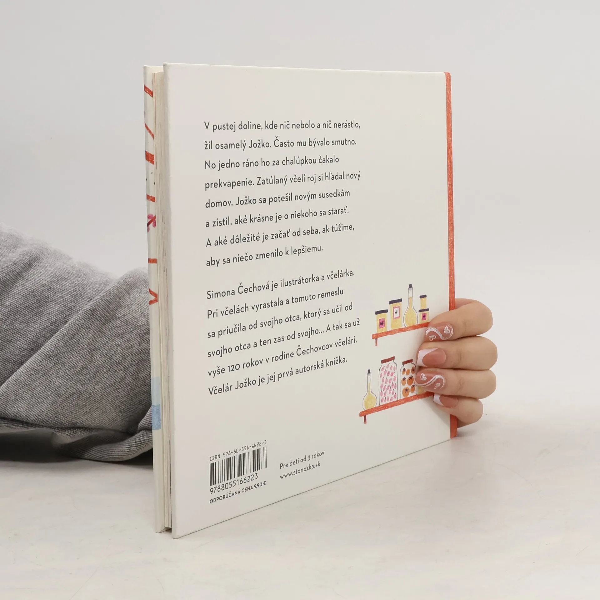 V pustej doline, kde nič nebolo a nič nerástlo, žil osamelý Jožko. Často mu bývalo smutno. No jedno ráno ho za chalúpkou čakalo prekvapenie. Zatúlaný včelí roj si hľadal nový domov. Jožko sa potešil novým susedkám a zistil, aké je krásne o niekoho sa starať. A aké je dôležité začať od seba, ak túžime, aby sa niečo zmenilo k lepšiemu. Simona Čechová je ilustrátorka a včelárka. Pri včelách vyrastala a tomuto remeslu sa priučila od svojho otca, ktorý sa učil od svojho otca a ten zas od svojho. .. A tak sú už vyše 120 rokov v rodine Čechových včelári. Včelár Jožko je jej prvá autorská knižka. Pre deti od 3 rokov Illustrations © 2019 by Simona Čechová