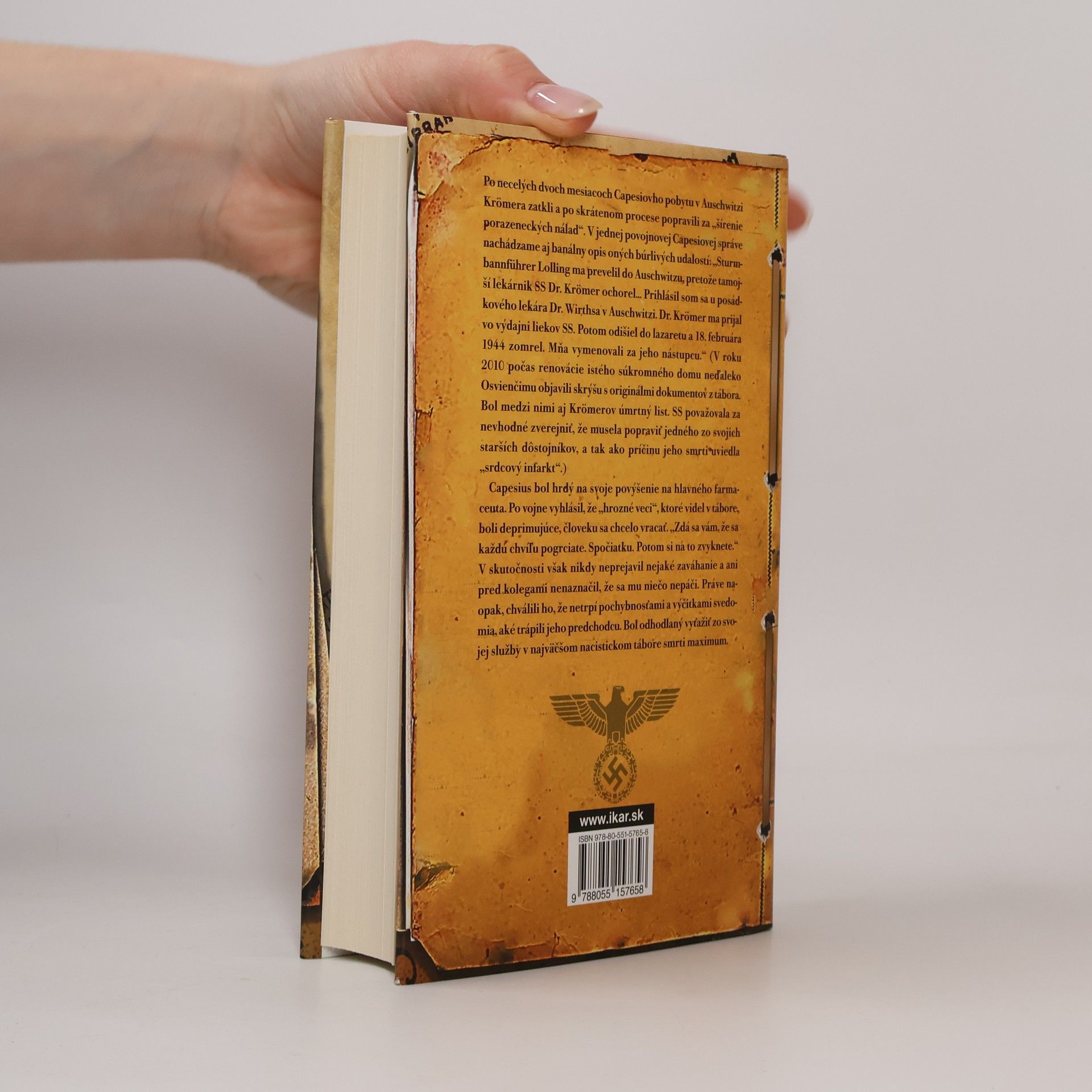 Kniha prináša málo známy príbeh Victora Capesia, rumunského obchodného zástupcu farmaceutickej spoločnosti Bayer, ktorý v roku 1943 vstúpil do SS a stal sa hlavným lekárnikom v najväčšom tábore smrti. V tejto úlohe vydával lieky na neľudské medicínske experimenty, spravoval jedovatý plyn, ktorým nacisti usmrtili milióny, a vykonával selekcie, rozhodujúc o živote a smrti prichádzajúcich židovských transportov. Okrem toho kradol cennosti väzňov a zubné zlato mŕtvych. Autorka Patricia Posnerová opisuje, ako britské a americké vojská po vojne Capesia zatkli a prepustili, pričom vychádza z doteraz utajovaných dokumentov. Odhaľuje, do akej desivej hĺbky môže klesnúť obyčajný človek bez svedomia či morálky. Kniha ponúka fascinujúci pohľad na diabolský pakt medzi nacistami a veľkým biznisom, pričom I. G. Farben, najväčší nemecký priemyselný konglomerát a materská spoločnosť Bayeru, dodávala do Auschwitzu lieky a testovala ich na väzňoch. Rozpráva príbeh vraždenia a chamtivosti, ktorého korene siahajú do temnôt holokaustu, a zanecháva v čitateľoch silný dojem. Odohráva sa na pozadí vojny, v ktorej Hitler chcel dobyť Európu, a konfrontácie Nemecka s jeho temnou minulosťou.