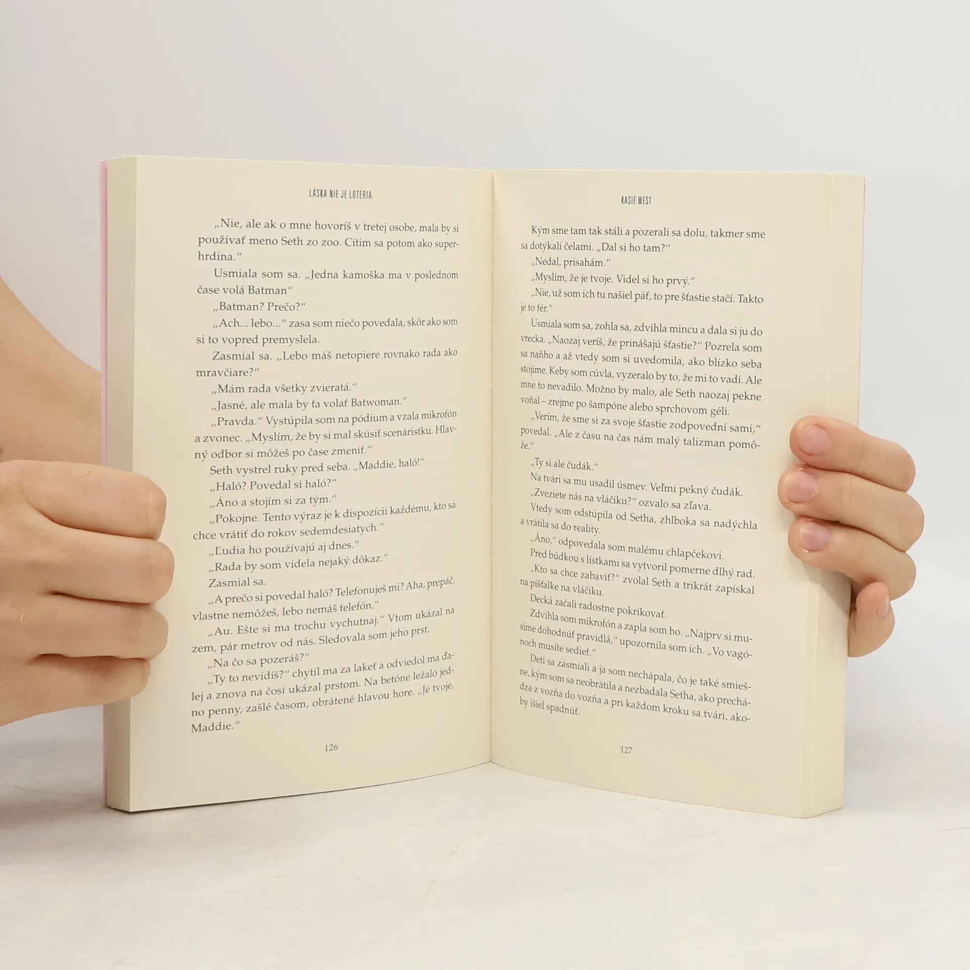 Nová kniha známej autorky románov pre baby Kasie West s názvom Láska nie je lotéria je miliónovým príbehom o výhre i prehre, priateľstve a láske s humorom a citom. Spontánnosť nepatrí medzi typické vlastnosti hlavnej hrdinky Maddie. Všetko si dôkladne plánuje a tvrdo drie, aby to dosiahla. Raz si však kúpi lós a na vlastné prekvapenie... Vyhrá! Život sa jej zmení ako šibnutím čarovného prútika. Už sa nemusí trápiť, či získa štipendium na prestížnu školu. Namiesto toho, si chce prenajať jachtu. Byť stredobodom pozornosti v škole tiež nie je na zahodenie. Až kým sa informácia o výhre nerozšíri a nezačnú ju žiadať o pôžičku ešte aj náhodní okoloidúci. Zrazu Maddie netuší, komu má veriť. Jedinou výnimkou je Seth Nguyen. Maddie s ním pracuje v miestnej zoo. Seth očividne netuší, že sa v jej živote niečo zmenilo. A, ktovieprečo, Maddie sa rozhodne, že mu to ani nepovie. Čo sa však stane, keď Seth jej tajomstvo odhalí?