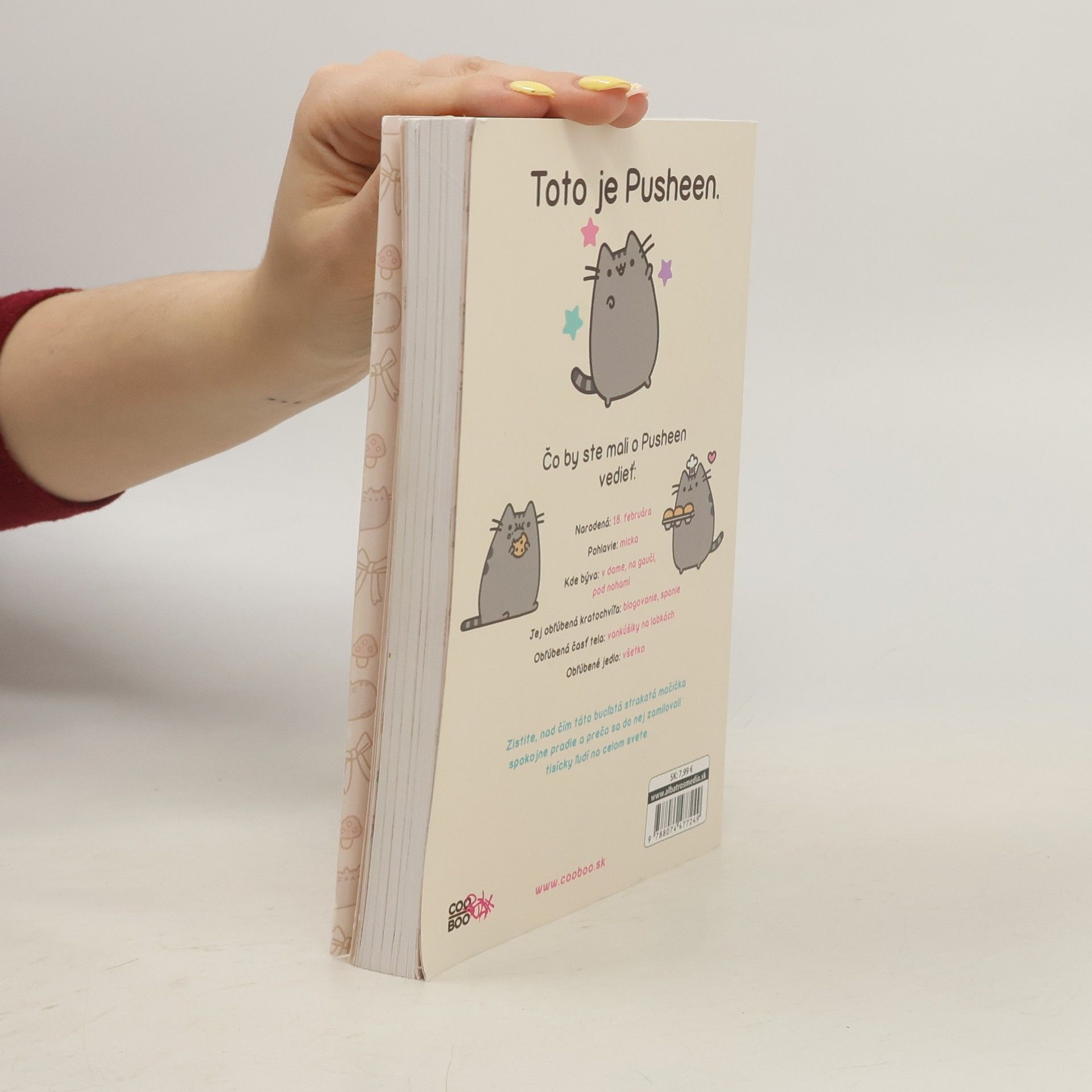 Pusheen je svetoznáma micka, ktorá sa netají tým, že rada papká, spí, oblizuje sa a tvári sa roztomilo. Svojimi zábavnými grifmi neustále rozosmieva všetkých facebookových nadšencov. Na stránkach tejto knižky znovu potvrdí, že s ňou nikdy nie je nuda! Okrem najpopulárnejších obrázkov, na ktorých vrtí chvostíkom a natriasa sa, tu objavíte množstvo ďalších veselých situácií, pri ktorých sa určite pobavíte. Zistite, nad čím táto bucľatá strakatá mačička spokojne pradie a prečo sa do nej zamilovali tisícky ľudí na celom svete.