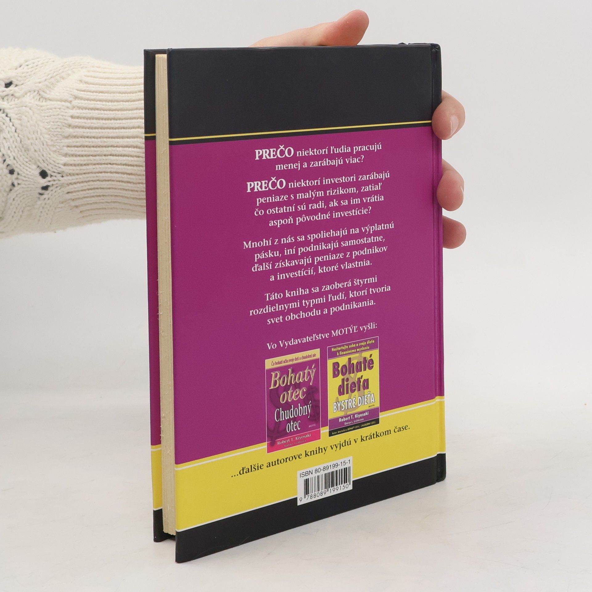 Úspešná kniha CASHFLOW KVADRANT od spoločnosti Rich Dad nám odhalí, ako môžu niektorí ľudia zarábať viac, hoci pracujú menej, prečo platia nižšie dane a že sa vzdelávajú preto, aby dosiahli finančnú slobodu. Položili ste si už niekedy nasledujúce otázky? Prečo niektorí investori zarábajú peniaze s minimálnym rizikom, zatiaľ čo iní stále nevedia prekročiť hranicu rentability a dosahovať zisk? Prečo väčšina zamestnancov strieda zamestnania, zatiaľ čo iní jednoducho odídu z jedného, aby následne vybudovali veľké spoločnosti a podnikateľské impériá? Čo pre mňa a moju rodinu znamená prechod z priemyselného veku do veku informácií? Ako môžem využiť túto zmenu vo svoj prospech a vytýčiť si cestu k finančnej slobode? Kniha CASHFLOW KVADRANT bola napísaná pre tých, ktorí sú pripravení... presunúť sa za hranice mimo istoty zamestnania a začať hľadať vlastný svet finančnej slobody, urobiť vo svojom živote významné zmeny, prevziať kontrolu nad svojou finančnou budúcnosťou a uchopiť ju do vlastných rúk,