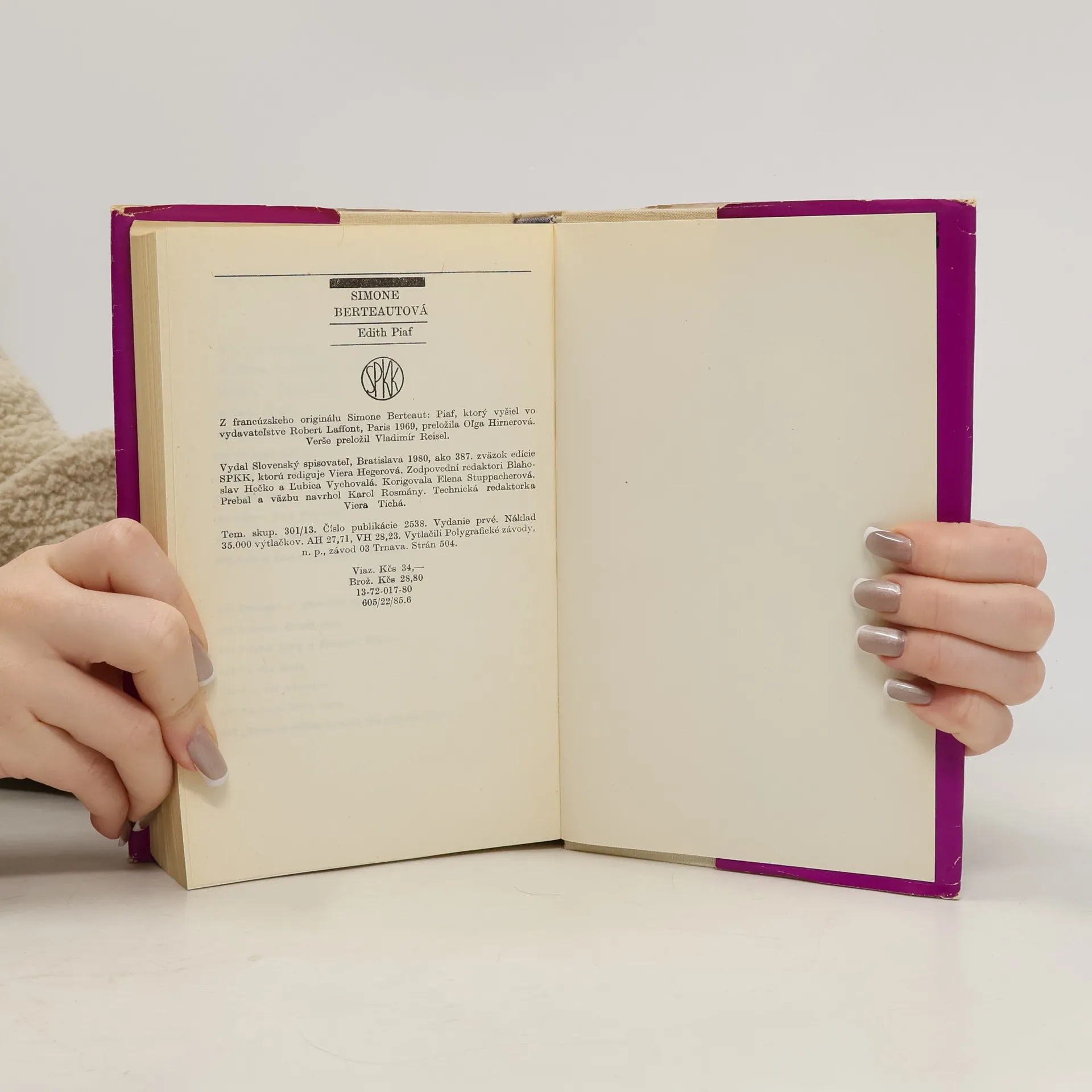 Životopisný román o francúzskej šansoniérke Edith Piaf, napísaný jej nevlastnou sestrou, ktorá hrala významnú rolu v živote Edith. Verše preložil Vladimír Reisel. Prvé vydanie v slovenčine, vyšlo v edícii SPKK.