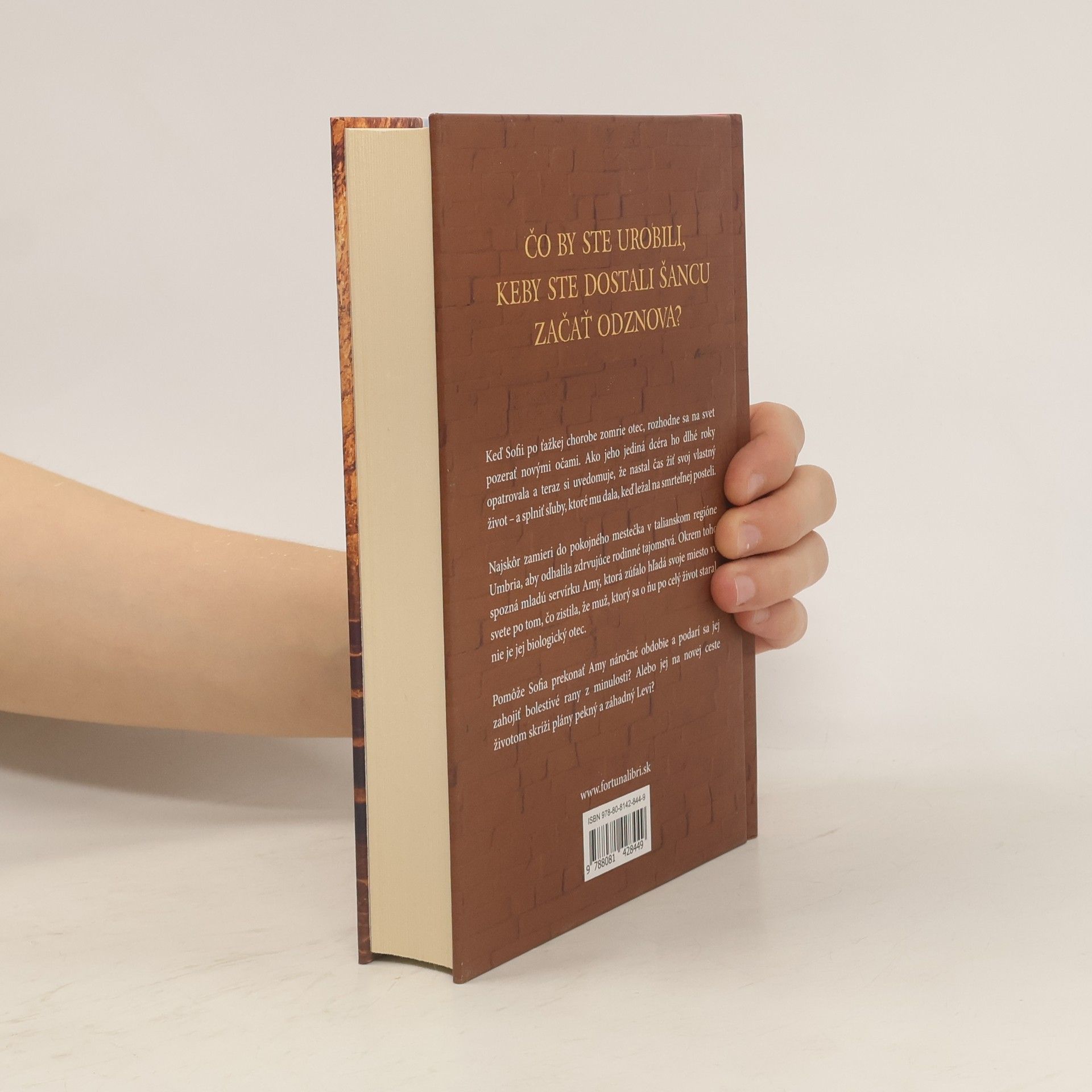Keď Sofii po ťažkej chorobe zomrie otec, rozhodne sa na svet pozerať novými očami. Ako jeho jediná dcéra ho dlhé roky opatrovala a teraz si uvedomuje, že nastal čas žiť svoj vlastný život – a splniť sľuby, ktoré mu dala, keď ležal na smrteľnej posteli. Najskôr zamieri do pokojného mestečka v talianskom regióne Umbria, aby odhalila zdrvujúce rodinné tajomstvá. Okrem toho spozná mladú servírku Amy, ktorá zúfalo hľadá svoje miesto vo svete po tom, čo zistila, že muž, ktorý sa o ňu po celý život staral, nie je jej biologický otec. Pomôže Sofia prekonať Amy náročné obdobie a podarí sa jej zahojiť bolestivé rany z minulosti? Alebo jej na novej ceste životom skríži plány pekný a záhadný Levi?