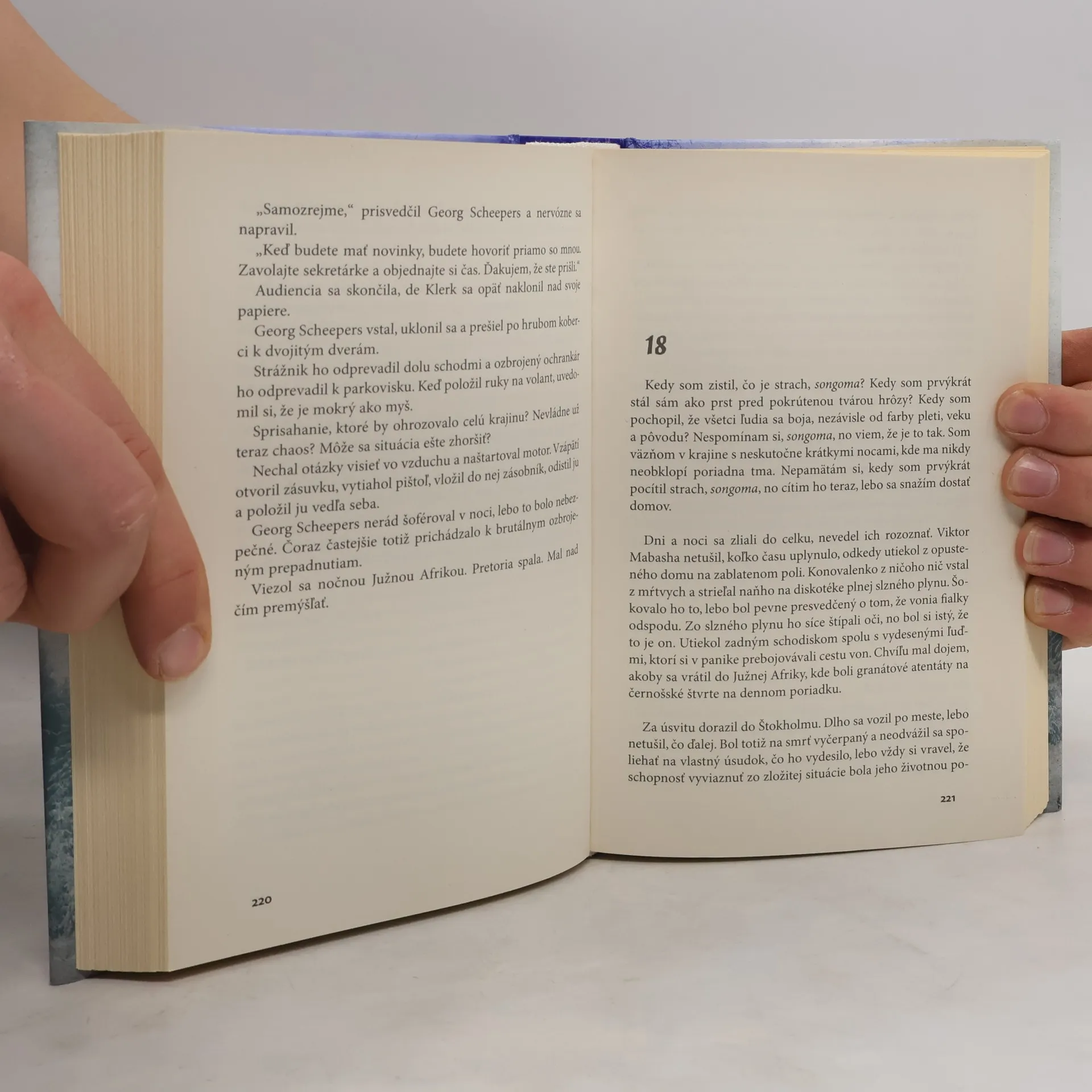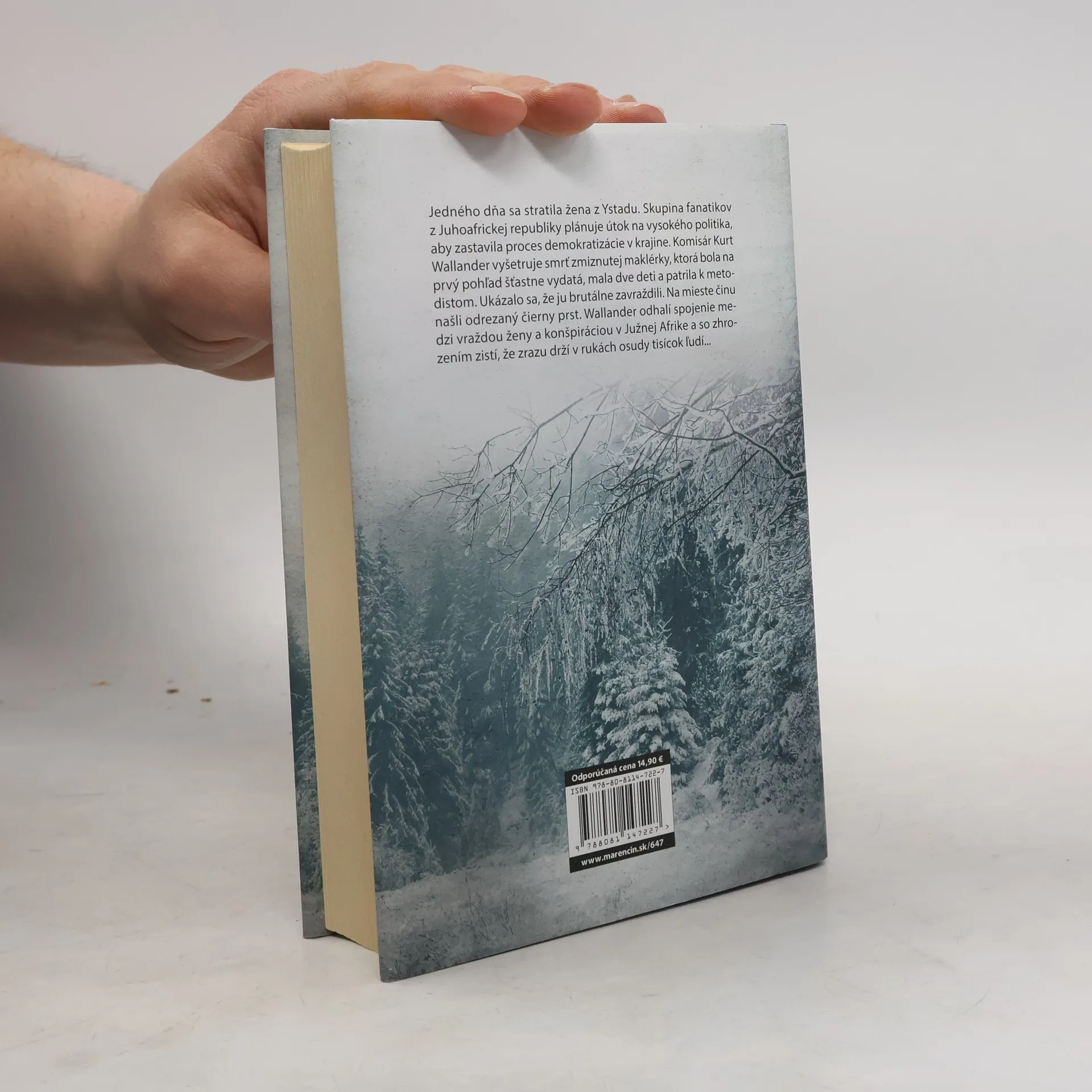 Jedného dňa sa stratila žena z Ystadu. Skupina fanatikov z Juhoafrickej republiky plánuje útok na vysokého politika, aby zastavila proces demokratizácie v krajine. Komisár Kurt Wallander vyšetruje smrť zmiznutej maklérky, ktorá bola na prvý pohľad šťastne vydatá, mala dve deti a patrila k metodistom. Ukázalo sa, že ju brutálne zavraždili. Na mieste činu našli odrezaný čierny prst. Wallander odhalí spojenie medzi vraždou ženy a konšpiráciou v Južnej Afrike a so zhrozením zistí, že zrazu drží v rukách osudy tisícok ľudí... Prvé vydanie.