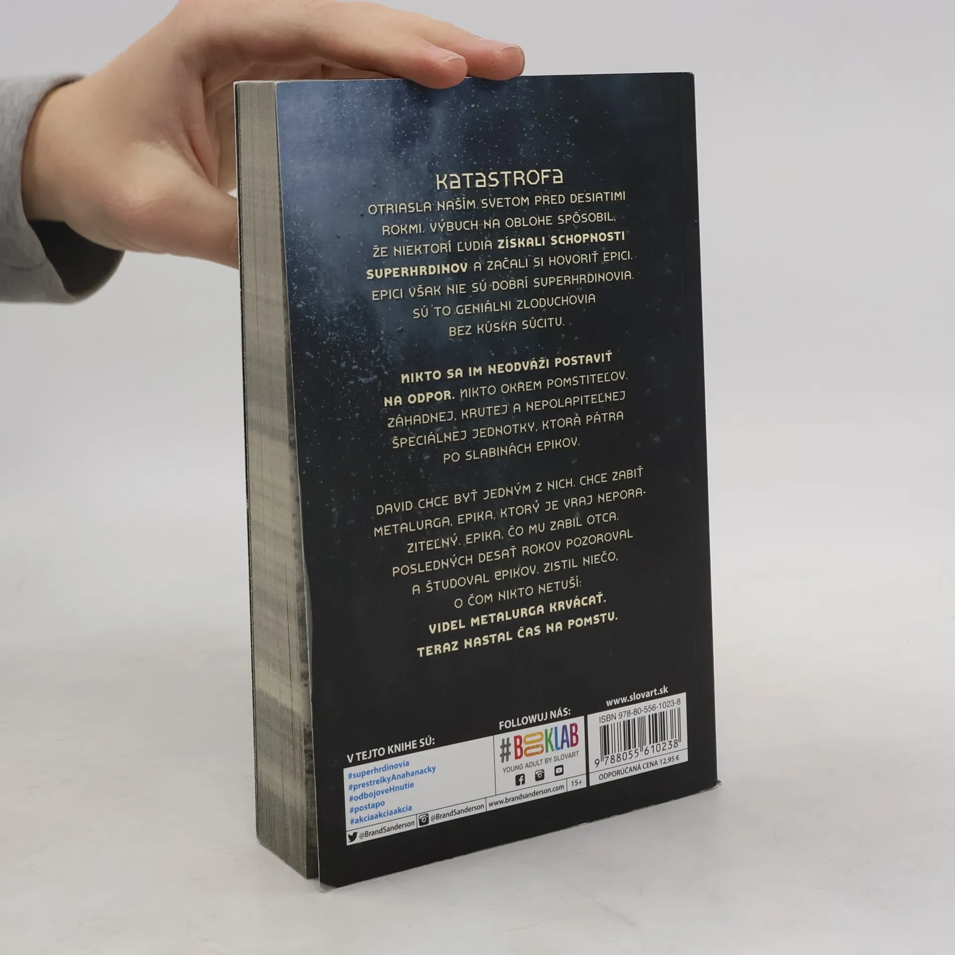 Postapokalyptické sci-fi. Pred desiatimi rokmi nastala Katastrofa, ktorá nezvratne zmenila našu planétu. Niektorým ľuďom totiž dala nadprirodzené schopnosti a vydesená spoločnosť ich nazvala Epici. Epici však nie sú dobrí superhrdinovia. Nie, sú to geniálni zloduchovia bez kúska súcitu. Nikto sa im neodvažuje postaviť na odpor. Nikto okrem Pomstiteľov záhadnej, krutej a nepolapiteľnej špeciálnej jednotky, ktorá pátra po ich slabostiach, aby ich mohla zabiť. David chce medzi nich. Chce dostať Metalurga, Epika, ktorý je vraj neporaziteľný. Epika, ktorý mu zabil otca. Posledných desať rokov bol ako Pomstitelia, pozoroval a študoval Epikov, plánoval. No David vie niečo, o čom nikto netuší: Videl Metalurga krvácať. Teraz nastal čas na pomstu.