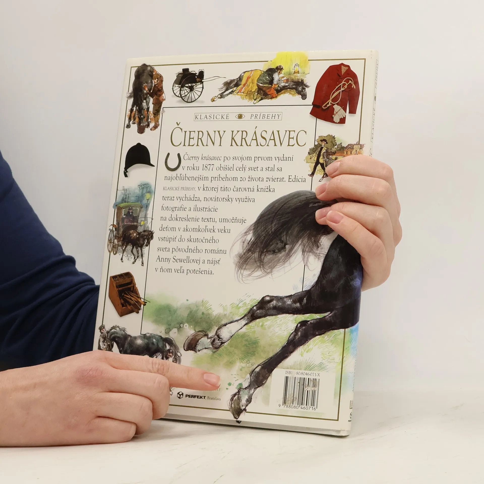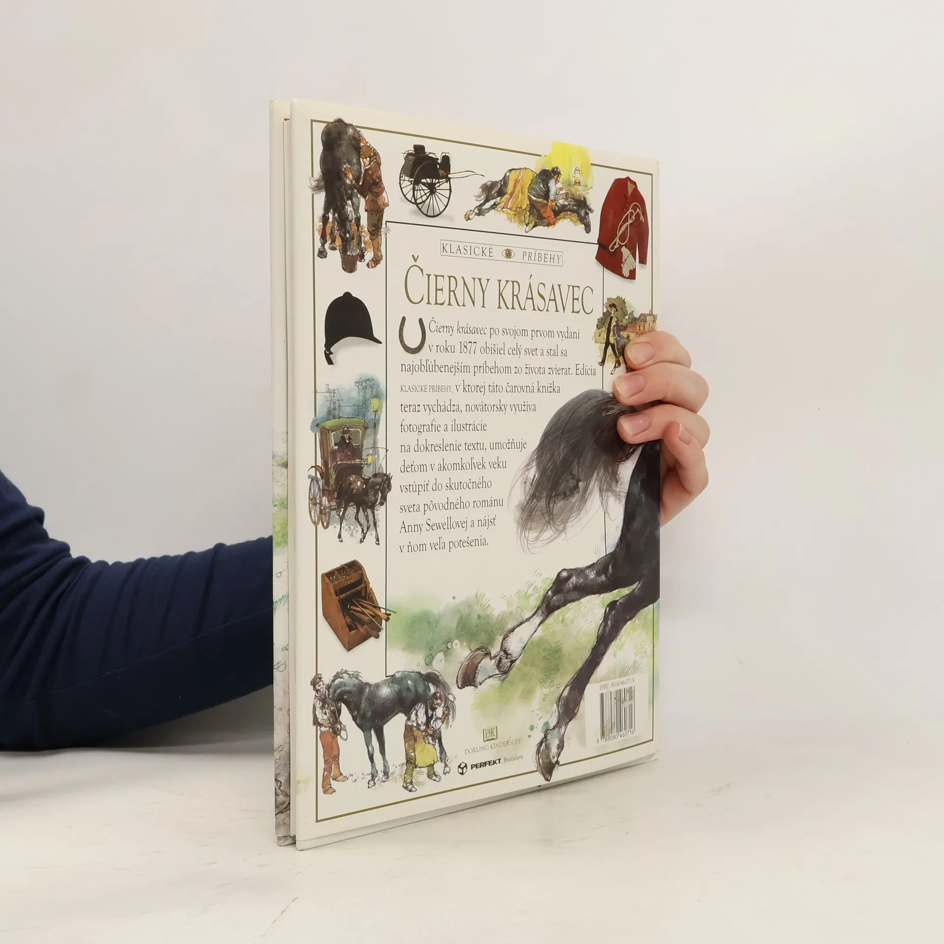 Čierny krásavec po svojom prvom vydaní v roku 1877 obišiel celý svet a stal sa najobľúbenejším príbehom zo života zvierat. Edícia Klasické príbehy, v ktorej táto čarovná knižka vyšla, novátorsky využíva fotografie a ilustrácie na dokreslenie textu, umožňuje deťom v akomkoľvek veku vstúpiť do skutočného sveta pôvodného románu Anny Sewellovej a nájsť v ňom veľa potešenia. Kapitoly: Môj prvý domov, Birtwický park, V hostinci, Nový paholok, Lúčenie, Earlshall, Vidiecky kôň, Nájomný kôň, Znovu ma predali, Na trhu, Zapriahnutý do londýnskej drožky, Londýn v časoch Krásavca, Ťažké časy, Môj posledný domov, Kone Anny Sewellovej.