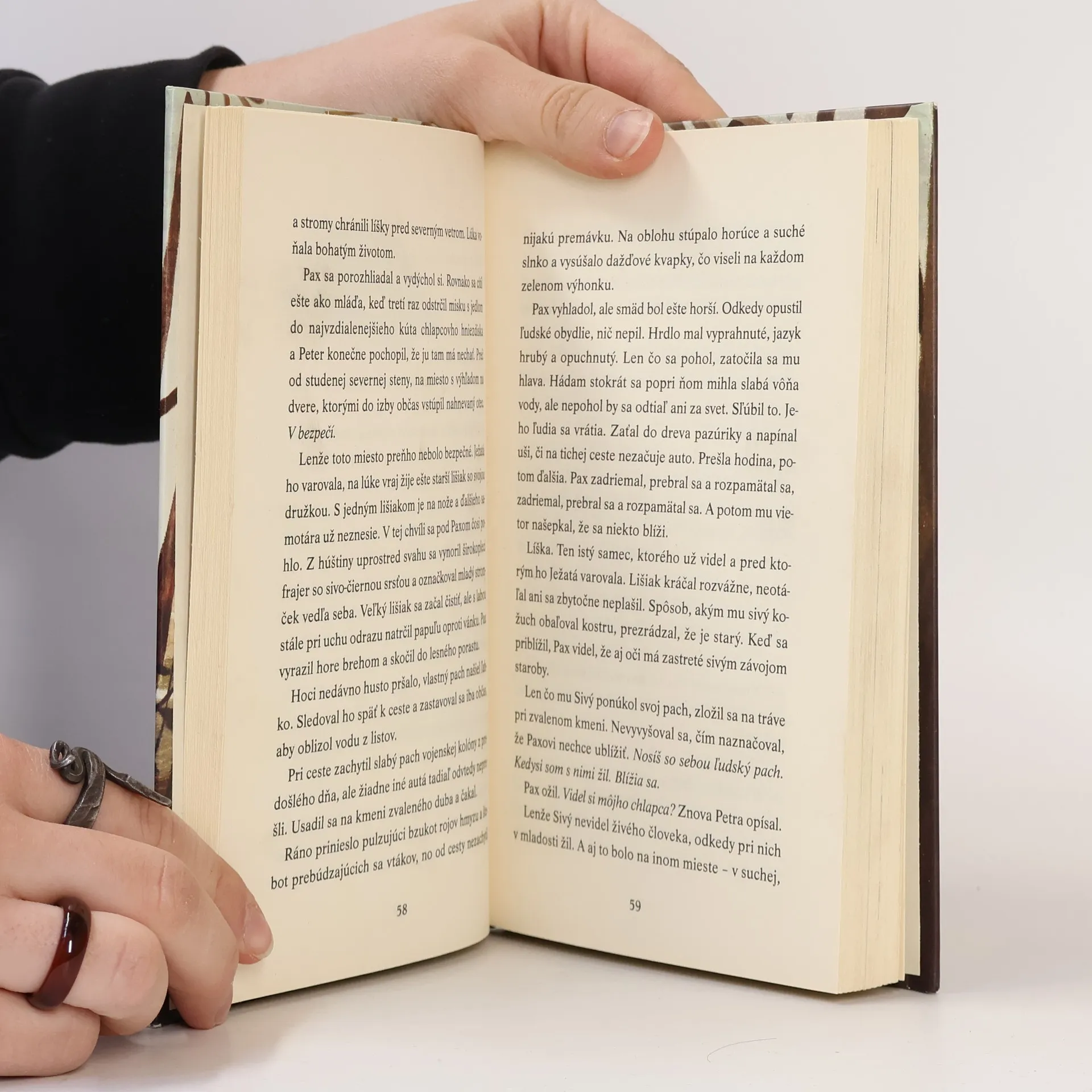Chlapec Peter a lišiak Pax sú nerozluční priatelia, odkedy Peter líščie mláďa zachránil. Lenže jedného dňa sa stane čosi nepredstaviteľné. Otec narukuje do armády a prinúti Petra vypustiť lišiaka späť do divočiny. O chlapca sa má postarať starý otec, päťsto kilometrov od domova. No pre Paxa tam nie je miesto. A tak sa chlapec – napriek blízkosti vojny – vyberie svojho lišiaka hľadať. Pax medzitým vytrvalo čaká na svojho chlapca a vydáva sa na vlastné dobrodružstvo... Oceňovaná autorka Sara Pennypackerová prináša čitateľom dojímavý príbeh o cene za vojnu a o sile priateľstva.