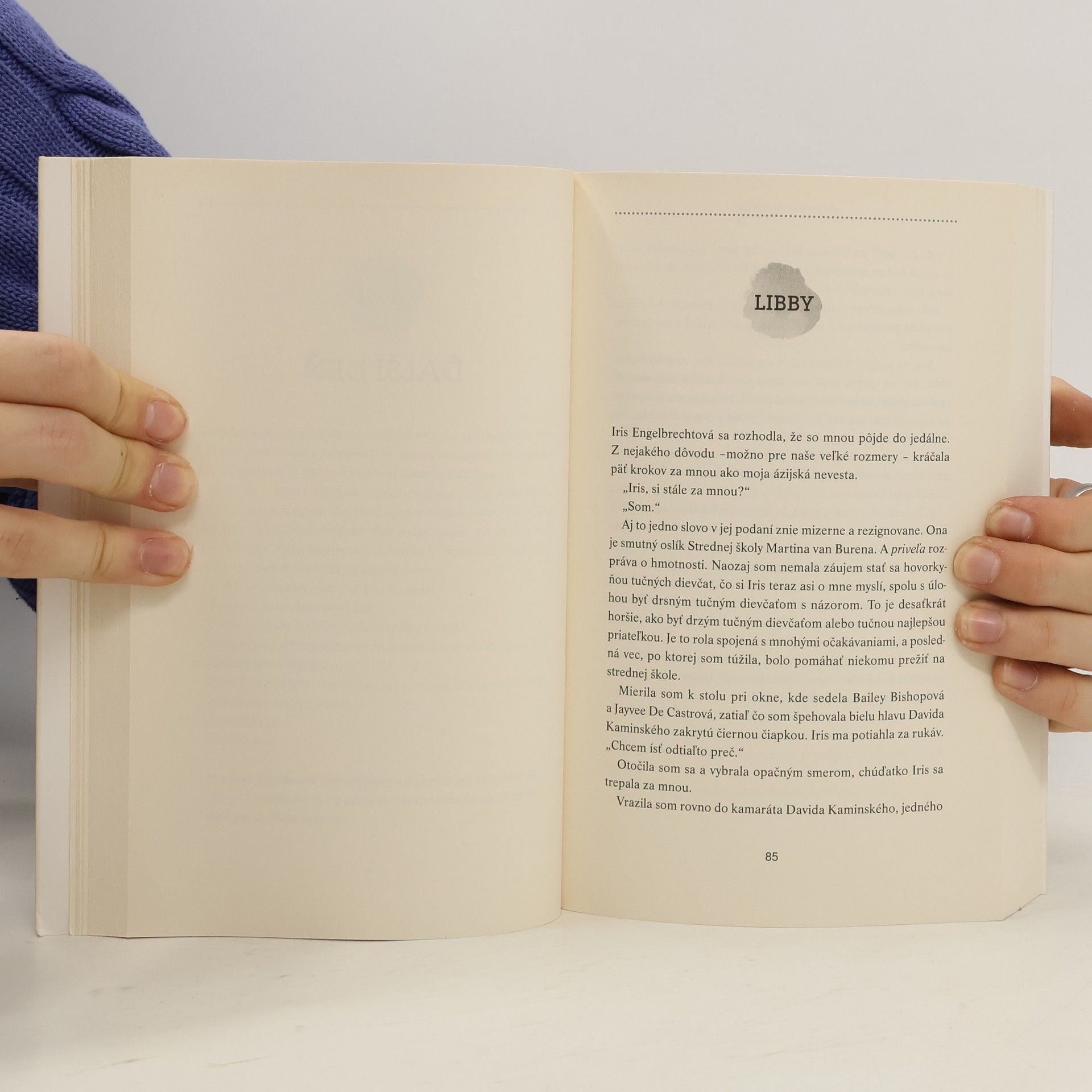 Libby Stroutovú vraj každý dobre pozná – veď pred pár rokmi ju vyhlásili za najtučnejšiu tínedžerku sveta. No ni¬kto sa neunúva nazrieť jej do duše, aby zistil, kým naozaj je a čím si prešla. Jacka Masselina vraj tiež každý dobre pozná. Je šarmantný, má štýl a vie, ako zapadnúť. No nikto netuší, že skrýva tajomstvo: trpí zriedkavou neurologickou poruchou a nie je schopný rozoznávať ľudí. On sa však tvári, že je nad vecou a nikoho si príliš nepúšťa k telu. Až kým nestretne Libby. Na začiatku ju Jack pred spolužiakmi kruto poníži a ona mu za to jednu strelí. Naj¬prv na seba zazerajú, no neskôr príde čosi, čo nečakali... postupne sa medzi nimi rodí zvláštne priateľstvo. On začne obdivovať Libbinu odvahu, razantnosť a veľké srdce, jej sa zasa zapáči Jackov šarm, zmysel pre humor, oddanosť blízkym. Odkedy trávia veľa času spolu, už necítia takú osamelosť v duši. Jednoducho tak to je – niekedy stretnete človeka, ktorý vám obráti celý svet hore nohami.