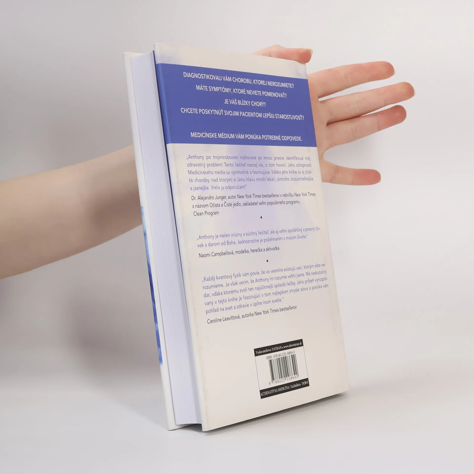 Príručka pre každého, kto chce poznať tajomstvo dlhovekosti a zdravia. Anthony William ako jedinečné Medicínske médium pomohol vyliečiť desaťtisíce ľudí, ktorým lekári stanovili nesprávnu diagnózu, nastavili neúčinnú liečbu alebo im nevedeli určiť chorobu. Podarilo sa mu to vďaka Božiemu hlasu, ktorý mu hovorí priamo do ucha, v čom spočíva príčina bolesti alebo choroby ľudí a čo musia urobiť, aby sa uzdravili. Jeho metódy dosahujú nevídané výsledky, a to aj v prípade ľudí, ktorí sa liečili už celé roky a minuli množstvo peňazí na rôzne formy liečby, kým ho požiadali o pomoc. V tejto prevratnej knihe otvorene ponúka všetky vedomosti, ktoré nadobudol za dvadsaťpäť rokov, počas ktorých vracia ľuďom späť ich život. Kniha obsahuje obrovské množstvo informácií o liečení chorôb, ktoré veda nebude poznať ešte celé desaťročia, a väčšina z týchto poznatkov sa ešte nikde neobjavila.
