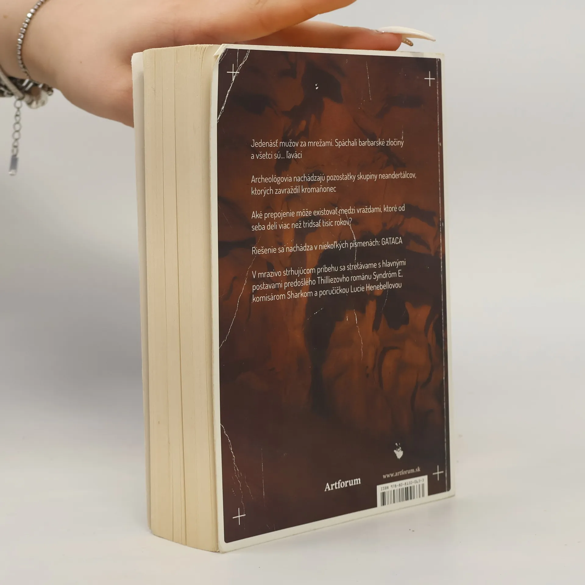 V mrazivo strhujúcom príbehu sa znova stretávame s hlavnými postavami predošlého Thilliezovho románu Syndróm E, komisárom Sharkom a poručíčkou Henebellovou. Archeológovia nachádzajú pozostatky skupiny neandertálcov, ktorých zavraždil kromaňonec. Jedenásť mužov za mrežami. Spáchali barbarské zločiny a všetci sú... ľaváci. Aké prepojenie môže existovať medzi vraždami, ktoré od seba delí viac než 30 000 rokov? Je tajomstvo zla ukryté v genetike? Dedí sa z generácie na generáciu prostredníctvom génov, alebo je podmienené spoločnosťou a kultúrou, v ktorej žijeme? Napätie, nečakané zauzlenia, prekvapivé súvislosti a informácie.