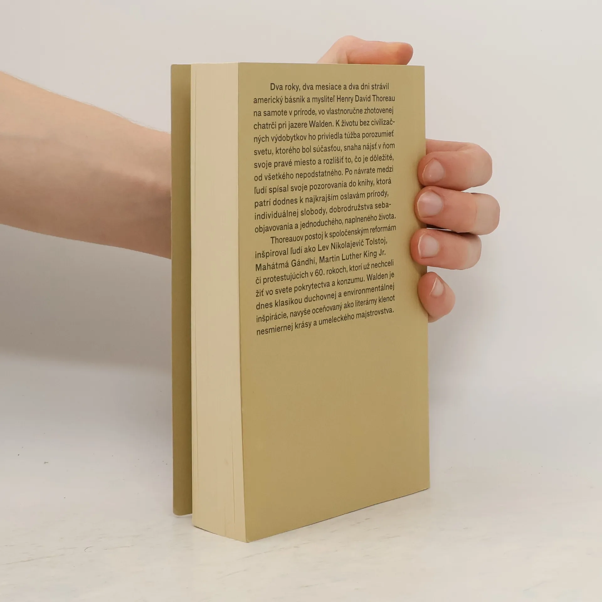 Dva roky, dva mesiace a dva dni strávil americký básnik a mysliteľ H. D. Thoreau na samote v prírode, vo vlastnoručne zhotovenej chatrči pri jazere Walden Pond. K životu bez civilizačných výdobytkov ho priviedla túžba porozumieť svetu, ktorého bol súčasťou, snaha nájsť v ňom svoje pravé miesto a rozlíšiť to, čo je dôležité od všetkého nepodstatného. Po návrate medzi ľudí spísal svoje pozorovania do knihy, ktorá patrí dodnes k najkrajším oslavám prírody, individuálnej slobody, dobrodružstva sebaobjavovania a jednoduchého, naplneného života. Dvesto rokov od narodenia autora ju v rukách konečne drží aj slovenský čitateľ.