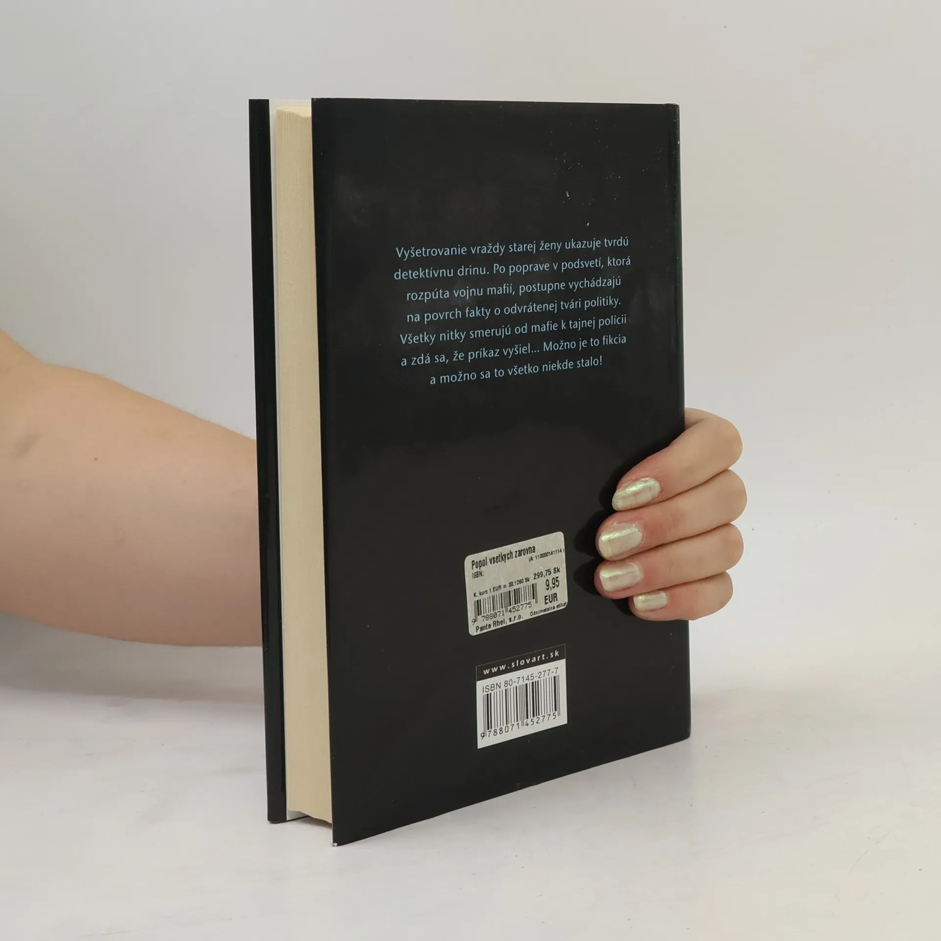 Naozaj neobyčajný detektívny román! Napísal ho človek, čo do detailov pozná policajné prostredie, podsvetie i praktiky tajných služieb. Často je však ťažké rozlíšiť, kto je kto. Detektívi Krausz a Fischer z oddelenia vrážd v Meste sa pri vyšetrovaní smrti mafiána Malého Pavúka, pobočníka Miroslava Stehlíka alias Bossa, dostanú k magnetofónovej kazete, na ktorej sa nebohý Malý Pavúk dohaduje s neznámym mužom na nejakom únose. Neskôr za podozrivých okolností vybuchne auto policajta Róberta Eliáša. Ukazuje sa, že vedel niečo o spolupráci tajnej služby a mafie pri únose syna vysokého predstaviteľa Republiky... Keď do seba začínajú kusy skladačky zapadať, z Ministerstva príde rozkaz vyšetrovanie zastaviť. Autor tvrdí: "Všetky osoby, dej a miesto v tejto knihe sú vymyslené a akákoľvek podobnosť so skutočnými udalosťami je čisto náhodná..." A možno nie !