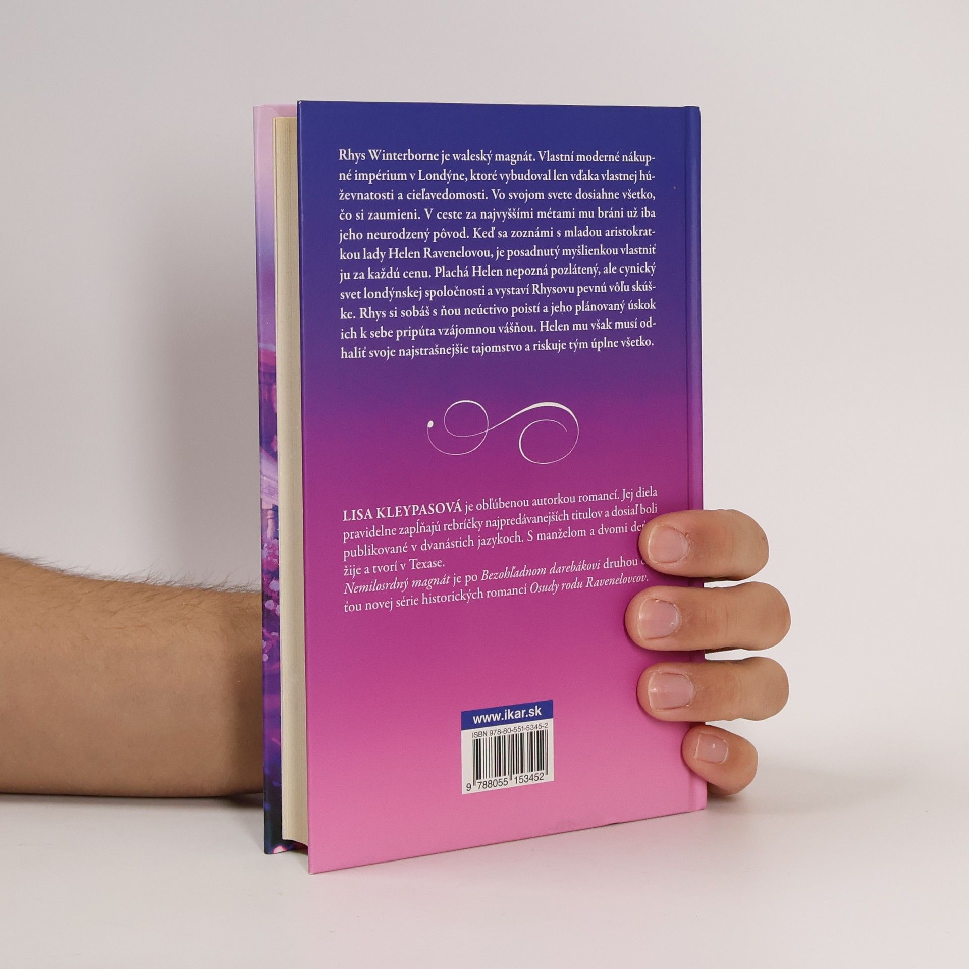 Rhys Winterborne je waleský magnát. Vlastní moderné nákupné impérium v Londýne, ktoré vybudoval len vďaka vlastnej húževnatosti a cieľavedomosti. Vo svojom svete dosiahne všetko, čo si zaumieni. V ceste za najvyššími métami mu bráni už iba jeho neurodzený pôvod. Keď sa zoznámi s mladou aristokratkou lady Helen Ravenelovou, je posadnutý myšlienkou vlastniť ju za každú cenu. Plachá Helen nepozná pozlátený, ale cynický svet londýnskej spoločnosti a vystaví Rhysovu pevnú vôľu skúške. Rhys si sobáš s ňou neúctivo poistí a jeho plánovaný úskok ich k sebe pripúta vzájomnou vášňou. Helen mu však musí odhaliť svoje najstrašnejšie tajomstvo a riskuje tým úplne všetko.