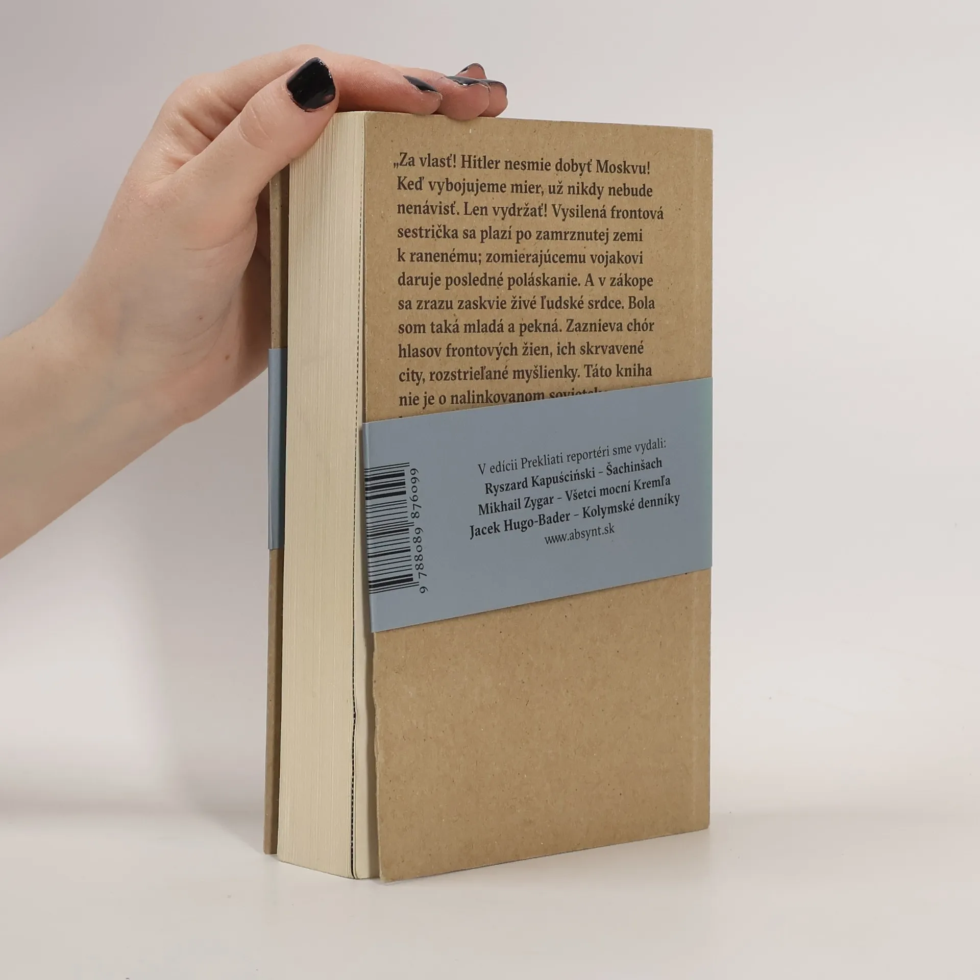O tých najväčších a najstrašnejších udalostiach sa hovorí potichu. V kuchyniach, obývačkách predmestských bytov, medzi štyrmi očami. Taká je aj kniha laureátky Nobelovej ceny Svetlany Alexijevič Vojna nemá ženskú tvár. V pamätiach stoviek žien, ktoré zažili Veľkú vlasteneckú vojnu ako jej priame účastníčky pátra po tom, čo je neprenosné, po tom najosobnejšom – zážitkoch, ktoré utkveli na kožiach vojačiek i zdravotníčok, spomienkach, ktorých sa nemožno zbaviť, nemožno ich vytesniť z pamäti, ani zo snov. Hrôza vojny sa v dokumentárnej koláži Svetlany Alexijevič strieda s prekvapujúcou ľudskosťou a odkrýva tak celkom inú tvár vojny, tvár, ktorú by sme v kusých kapitolách učebníc dejepisu hľadali len márne.