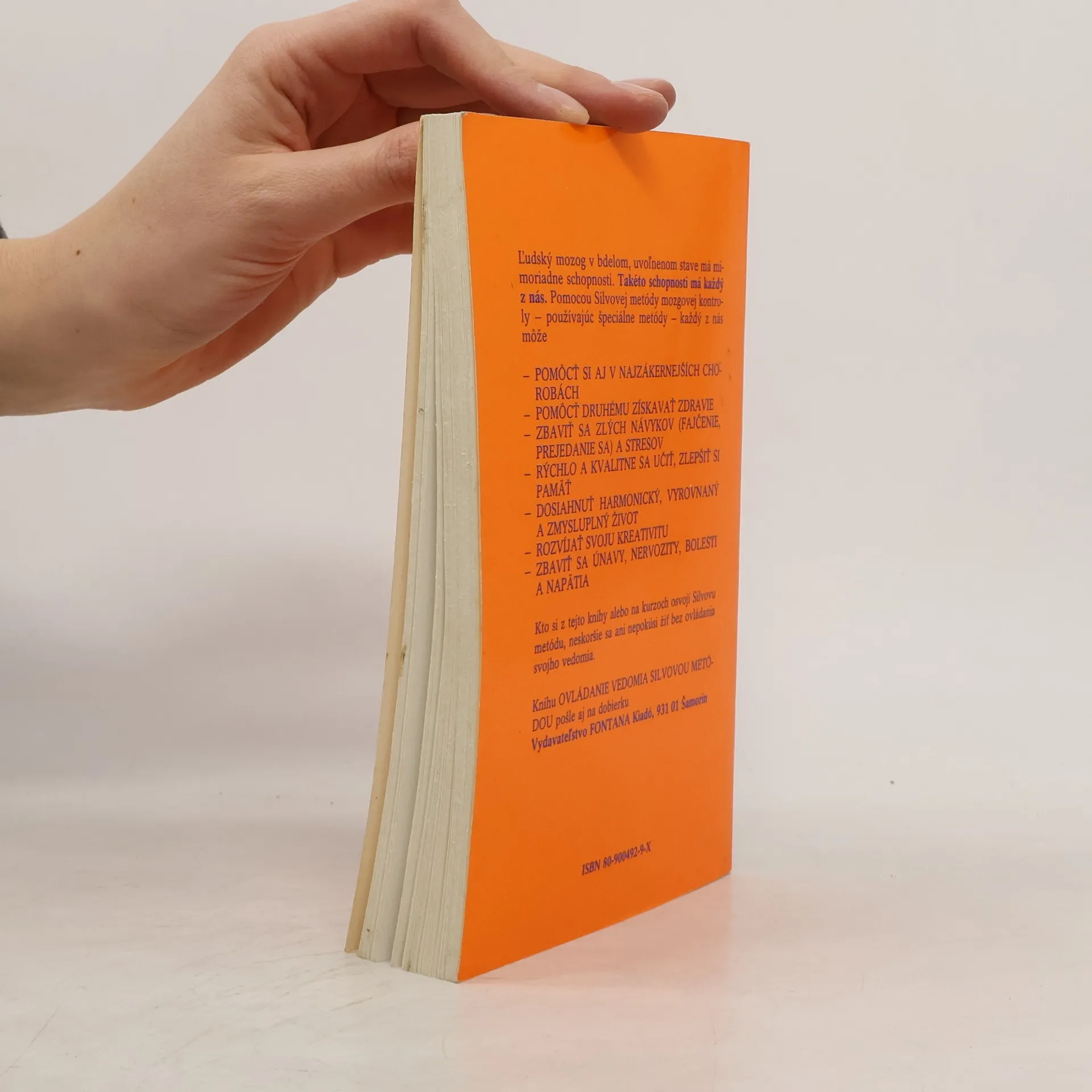 Ľudský mozog v bdelom, uvoľnenom stave má mimoriadne schopnosti. Takéto schopnosti má každý z nás. Pomocou Silvovej metódy mozgovej kontroly - používajúc špeciálne metódy - každý z nás môže - POMÔCŤ SI AJ V NAJZÁKERNEJŠÍCH CHOROBÁCH - POMÔCŤ DRUHÉMU ZÍSKAVAŤ ZDRAVIE - ZBAVIŤ SA ZLÝCH NÁVYKOV (FAJČENIE, PREJEDANIE SA) A STRESOV - RÝCHLO A KVALITNE SA UČIŤ, ZLEPŠIŤ SI PAMÄŤ - DOSIAHNUŤ HARMONICKÝ, VYROVNANÝ A ZMYSLUPLNÝ ŽIVOT - ROZVÍJAŤ SVOJU KREATIVITU - ZBAVIŤ SA ÚNAVY, NERVOZITY, BOLESTÍ A NAPÄTIA Kto si z tejto knihy alebo na kurzoch osvojí Silvovu metódu, neskoršie sa ani nepokúsi žiť bez ovládania svojho vedomia.