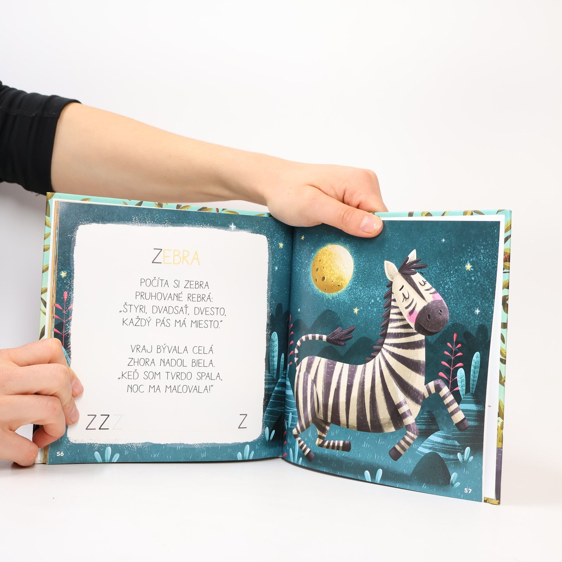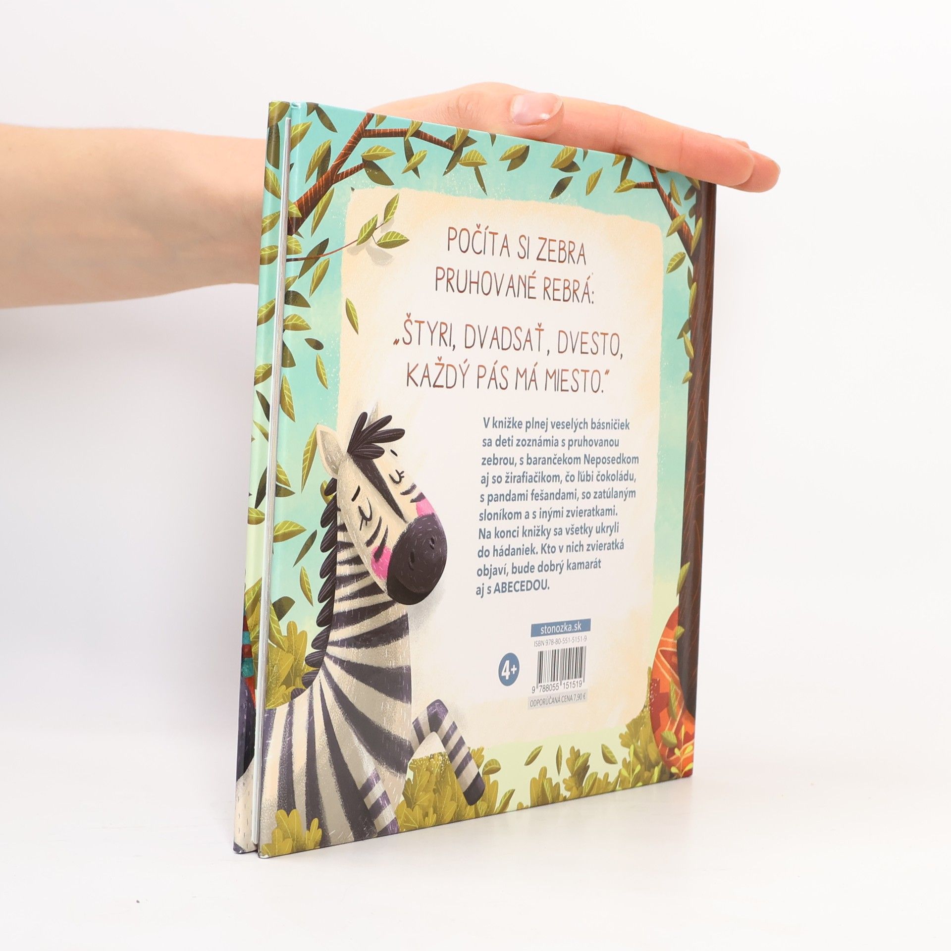 V knižke plnej veselých básničiek sa deti zoznámia s pruhovanou zebrou, s barančekom Neposedkom aj so žirafiačikom, čo ľúbi čokoládu, s pandami fešandami, so zatúlaným sloníkom a s inými zvieratkami. Na konci knižky sa všetky ukryli do hádaniek. Kto v nich zvieratká objaví, bude dobrý kamarát aj s ABECEDOU.